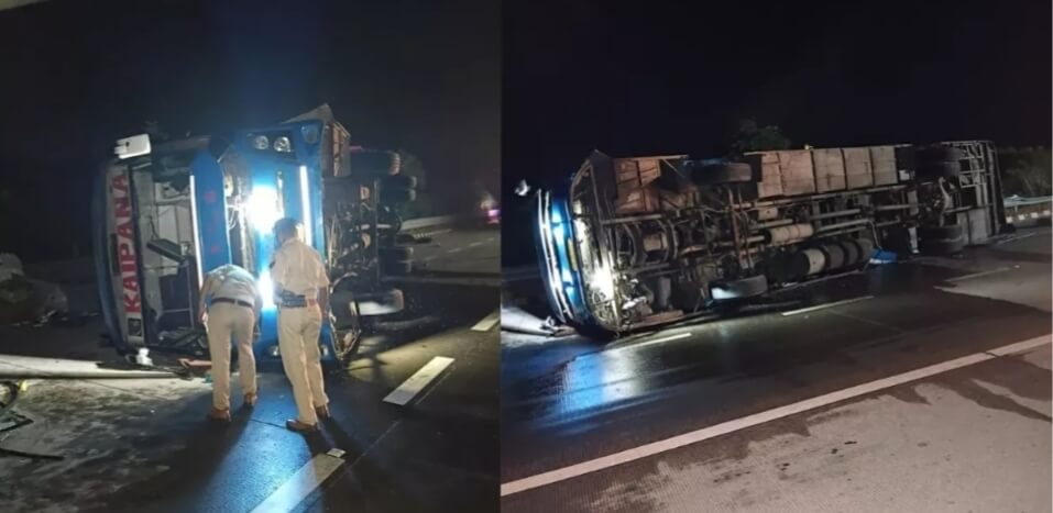 मथुरा। बलदेव के गांव आगई के समीप यमुना एक्सप्रेसवे के माइल स्टोन 131 पर मंगलवार रात तेज रफ्तार डबल टेकर बस डिवाइडर से टकराकर पलट गई। हादसे में 13 यात्री घायल हो गए है। पुलिस ने घायलों को अस्पताल में भर्ती कराया गया। हादसे का कारण चालक को नींद की झपकी आना बताया जा रहा है। यमुना एक्सप्रेसवे पर डबल डेकर बस नोएडा से कानपुर जा रही थी। बलदेव के गांव आगई के समीप चालक को झपकी आने से बस डिवाइडर से टकराकर अनियंत्रित होकर पलट गई। हादसे में मीरा देवी निवासी तुरकीपुर औरैया, सुशीला, मदन सिंह, साहिल खान, शौकीन खान निवासी जालौन, मानसी निवासी शुक्लागंज उन्नाव, आराधना अकबरपुर कानपुर देहात, आदिल निवासी रावतपुर कानपुर, कुर्मीदा, अमन निवासी इटोरा जालौन, यूनुस निवासी शाहगंज जालौन, प्रमोद यादव निवासी फतेहपुर, अरविंद सिंह निवासी पटेल नगर कानपुर, शारून निवासी अकबरपुर कानपुर नगर आदि गंभीर घायल हो गए। सुरक्षित यात्रियों को अन्य बस के माध्यम से गंतव्य के लिए भेजा। बलदेव थाना प्रभारी रंजना सचान ने बताया कि प्रथमदृष्टया चालक को झपकी आने से घटना हुई है। 16 वर्षीय आदिल के हाथ व 18 वर्षीय अमन के पैर में फैक्चर हो गया है।