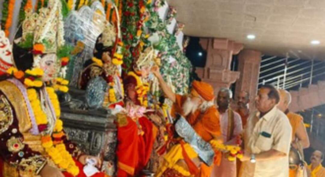 मथुरा। श्री रामलीला सभा के तत्वावधान में श्रीकृष्ण जन्मस्थान, लीला मंच पर श्रीराम राज्याभिषेक लीला का भव्य मंचन हुआ। मर्यादा पुरुषोत्तम श्रीराम को राजतिलक के बाद राज सिंहासन पर विराजित किया गया। कुलगुरु वशिष्ठ के रूप में श्री शरणानंद जी महाराज ने वेदोच्चारण के साथ प्रभु का राजतिलक किया। कार्यक्रम में सभा के पदाधिकारी एवं सदस्यों ने उपहार अर्पित किए, माता कौशल्या ने आरती उतारी। बंदीजन व वानर भक्ति और हास्यपूर्ण दृश्यों के माध्यम से लीला का रसपूर्ण मंचन हुआ। हनुमानजी की वीरता और भक्ति दर्शकों के लिए आकर्षण का केंद्र रही। प्रसाद सेवा रविकांत गर्ग, मूलचन्द गर्ग और गिरधारी लाल गर्ग ने की। इस अवसर पर नंद किशोर अग्रवाल, मूलचंद गर्ग, प्रदीप सर्राफ पीके, विजय किरोड़ी, शशांक पाठक समेत अन्य उपस्थित रहे।