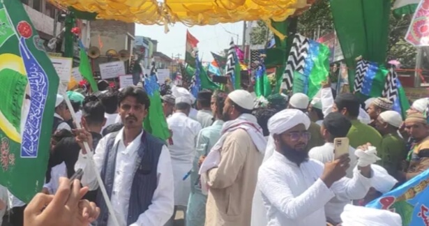 मथुरा। कान्हा की नगरी में सोमवार को जश्ने ईद मिलादुन्नबी पर्व मनाया गया। जिले में शानो शौकत के साथ जुलूस निकाला गया। मस्जिद मनोहर पुरा कमेटी द्वारा सोमवार को पैगंबर मोहम्मद के पैदाइश के मौके जुलूस निकाला गया। जगह जगह हलुआ पूरी, आइसक्रीम, फल मिठाइयों को बांटा गया। इसमें अतिथि के तौर पर ज़िले भर के मौलाना मौजूद रहे। कार्यक्रम को संबोधित करते हुए मौलाना हाफ़िज इमरान रज़ा ने कहा कि मुसलमानों के लिए यह जरुरी है कि हमलोग ईस्लाम के कानूनों को मानें। अल्लाह ने कुरान मजीद में सब कुछ लिख दिया है। यदि हम लोग कुरान मजीद को सही रूप से समझें तो हम जरुर कामयाब होंगे। हमारी नबी दुनियां के लिए रहमत बनकर आए थे। वह किसी समुदाय के नहीं बल्कि सभी लोगों के लिए संदेश लेकर आए। उनकी पैदाइश के मौके पर बेंड ओर ढ़ोल बाजो के साथ जुलूस निकालने को शरियत में कहीं से जायज नहीं ठहराया गया है। माैलाना मक़सूद अहमद ने कहा कि आप जहां रहें अपने ईमान पर रहें। आपस में मतभेद को मिटाकर सच्चे मन से इंसानियत के लिए बेहतरी सोंचे। जिस देश में आप रहते हैं वहां की बेहतरी के लिए सोंचें। इस मौके पर हाजी मोहम्मद यामीन कमरे वाला परिवार, हाजी सलाम, एडवोकेट हुसैन, इकरार अली आदि मौजूद थे। वहीं दूसरी और चुन्ना पहलवान परिवार हाजी सलाम ने दरेसी स्थित जुलूस में मौजूद लोगों को मिठाई बांटी गई हजरत साहब की पैदाइश के दिन की ख़ुशी मनाई गई। माैके पर अफसर मिस्त्री, नन्हे मियां, तुसार, अंगजुआ पहलवान, इकराम कुरैसी आदि मौजूद रहे।