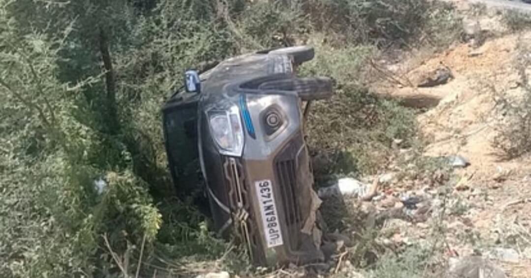 अनियंत्रित कार गड्ढे में गिरी, हादसा टला