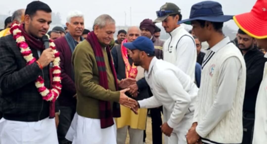 मथुरा। कोसीकलां में 39वें अंतरराज्यीय कोसी आमंत्रण क्रिकेट टूर्नामेंट के उद्घाटन मैच में अचीवर्स एकेडमी मथुरा ने जेडी स्पोर्ट्स फरीदाबाद को पांच विकेट से हरा दिया। सोमवार को चाहर एकेडमी आगरा और फिरोजाबाद के मध्य मैच खेला जाएगा। हिंदू इंटर कॉलेज के मैदान पर आयोजित मैच कर शुभारंभ कैबिनेट मंत्री चौधरी लक्ष्मीनारायण, मंत्री प्रतिनिधि नरदेव चौधरी, विवेक चौधरी, अजय गोयंका आदि ने फीता काटकर, टॉस उछालकर एवं खिलाड़ियों से परिचय प्राप्त करके किया। फरीदाबाद की टीम ने टॉस जीतकर पहले बल्लेबाजी करने का निर्णय लिया। बल्लेबाजी करने उतरी जेडी स्पोर्ट्स की टीम की शुरुआत अच्छी नहीं रही। गेंदबाज प्रांजल सिंह ने अपनी घातक गेंदबाजी से तीसरे ओवर में मात्र 10 रन पर 3 विकेट चटकाकर फरीदाबाद की टीम को बैकफुट पर धकेल दिया। मथुरा की टीम के गेंदबाजों ने 19 ओवर में पूरी टीम को 100 रन पर ढेर कर दिया। रुद्र अत्री ने 22, हरजीत चंदेल ने 16 और अतुल पाठक ने 15 रन बनाए। प्रांजल सिंह ने 4, हनी खारी ने 2 तथा आसिफ़ मंसूरी ने एक-एक विकेट लिया। इस मौके पर दिग्विजय सिंह, नवनीत अग्रवाल, वीरेंद्र चौधरी, विवेक चौधरी, रोहताश चौधरी, जिब्रान हुसैन, मुकुंद निरंकारी, देवकी नंदन, मयंक प्रताप, अप्पू खान आदि मौजूद रहे।