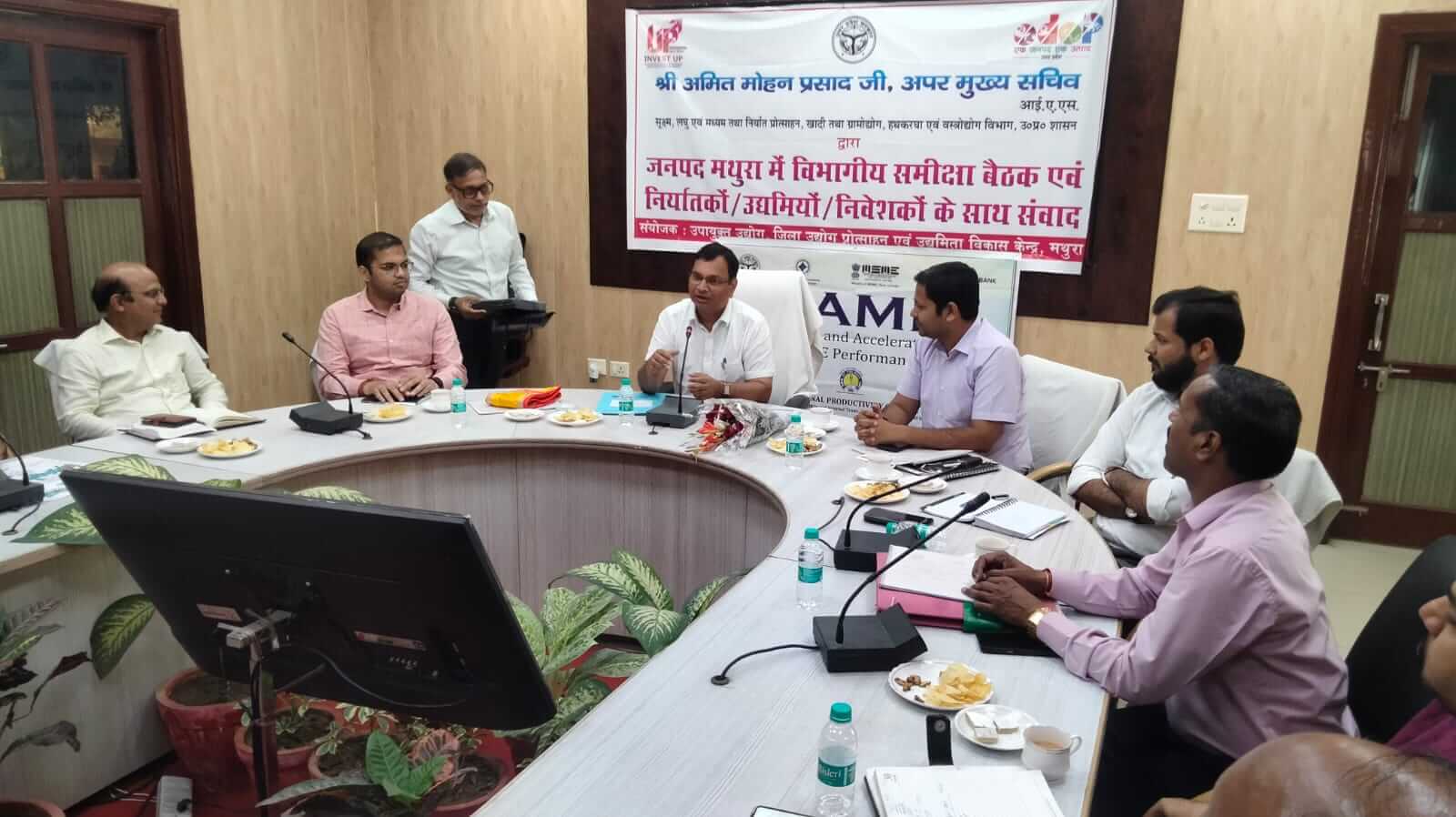 मथुरा 01 जून। अपर मुख्य सचिव सूक्ष्म लघु एव मध्यम तथा निर्यात प्रोत्साहन, खादी ग्रामोद्योग, हथकरघा एव वस्त्रोद्योग अमित मोहन प्रसाद ने कलेक्ट्रेट सभागार में उद्यम विभाग की उद्यमियों (एमएसएमई) के रजिस्ट्रेशन को बढ़ावा देने के लिए संचालित उद्यम रजिस्ट्रेशन (यूआरसी) अभियान के तहत संचालित व्यापारियों, कारखाने संचालकों तथा उद्यमियों के साथ बैठक की। यह अभियान 1 जून से 15 जून 2023 तक चलाया जाएगा।
