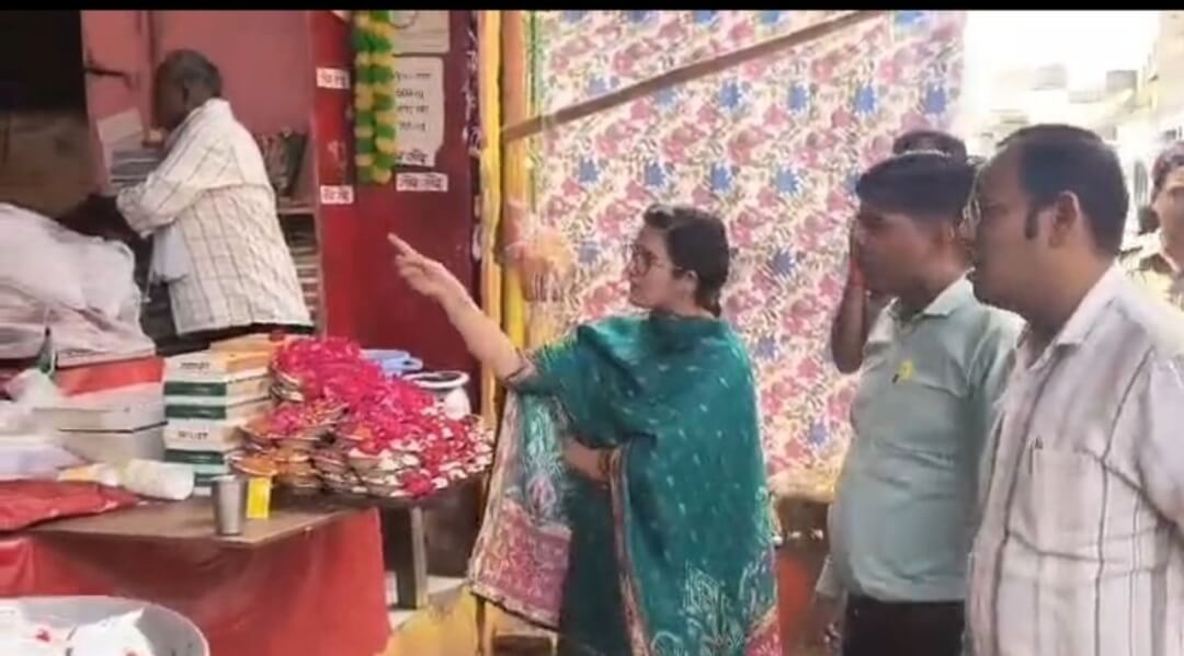 गोवर्धन में दानघाटी की दुकानों पर प्रशासन ने की जांच