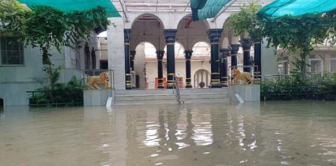 मथुरा। वृंदावन में यमुना नदी का जलस्तर एक बार फिर खतरे के निशान को पार कर गया है। इसका सबसे बड़ा असर कात्यायनी देवी मंदिर पर पड़ा है, जहां मंदिर के पीछे की दीवार तोड़ते हुए पानी ऐतिहासिक जगमोहन तक पहुंच गया है। वहीं बांकेबिहारी मंदिर में दाऊजी तिराहा भी सोमवार को जलमग्न हो गया। स्थानीय लोगों के अनुसार, इससे पहले 1978 में आई भीषण बाढ़ के दौरान भी मंदिर के जगमोहन तक पानी पहुंचा था। हालांकि इसके बाद 2010 और 2023 में भी बाढ़ आई थी, मगर जलस्तर इस हद तक नहीं पहुंच पाया था। बीती रात अचानक जलस्तर में बढ़ोतरी हुई और मंदिर परिसर के साथ-साथ आसपास के इलाकों में भी पानी भर गया। मंदिर प्रबंधन ने बाढ़ को देखते हुए दो दिन के लिए मंदिर को आम लोगों के लिए बंद कर दिया है।