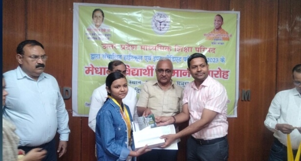 मथुरा। आज दिनांक 14 जून 2023 को जनपद मथुरा के एनआईसी कक्ष में उत्तर प्रदेश माध्यमिक शिक्षा परिषद द्वारा वर्ष 2023 में आयोजित हाई स्कूल एवम इंटरमीडिएट परीक्षा में जनपद स्तर पर प्रथम दस स्थान प्राप्त मेधावी छात्र छात्राओं को सम्मानित किया गया तथा माननीय मुख्य मंत्री उत्तर प्रदेश सरकार द्वारा प्रदेश स्तर पर मेधावी छात्र छात्राओं को सम्मानित करने एवम उनके उद्बोधन का सीधा प्रसारण दिखाया गया।