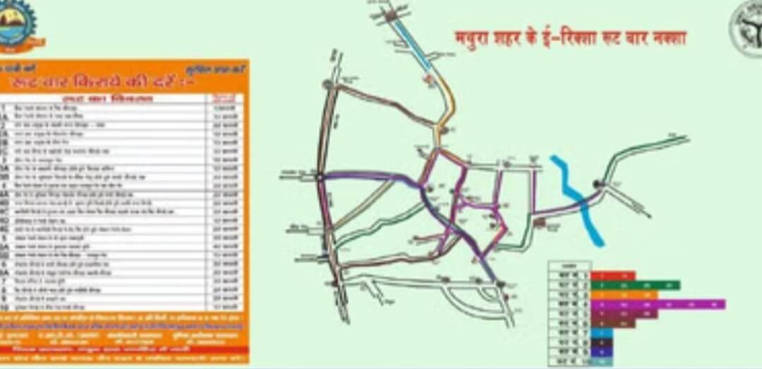 मथुरा में ई-रिक्शा-ऑटो के नए रूट और किराया सूची के बैनर लगाए