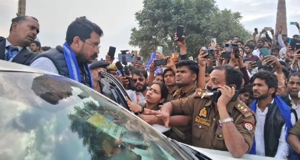 मथुरा। आजाद समाज पार्टी के राष्ट्रीय अध्यक्ष और नगीना से सांसद चंद्रशेखर आजाद के काफिले पर शुक्रवार को बाइक सवार कुछ युवकों ने पथराव कर दिया। वह उस वक्त मांट के सिर्रेला गांव से सुरीर के गांव भगत नगरिया जा रहे थे। कई पत्थर लगने से एक सिपाही और एक युवक को मामूली चोट आई है। समर्थकों ने हंगामा कर नारेबाजी की। दो युवकों को पकड़कर जमकर पीटा और पुलिस को सौंप दिया। बता दें कि सांसद चंद्रशेखर आजाद शुक्रवार को मथुरा पहुंचे। दोपहर में वह अपने काफिले के साथ रिफाइनरी थाना क्षेत्र के एक गांव में पहुंचे। यहां पिछले दिनों दलित बहनों की शादी थी, दबंगों ने बहनों और बरातियों को पीटा, इससे बरात लौट गई। उन्होंने परिवार को ढांढस बंधाया और फिर उनका काफिला मांट के सिर्रेला गांव पहंचा।