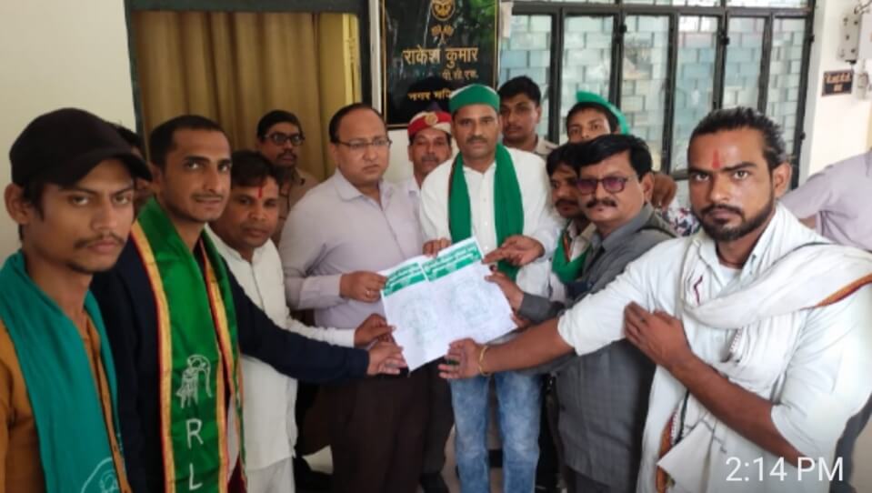 मथुरा आज दिनांक 2 जुलाई 2024 को भारतीय किसान यूनियन भानू के कार्यकर्ताओं पदाधिकारी ने अपने निर्धारित कार्यक्रम के तहत जय जवान जय किसान किसानों को न्याय दो भारतीय किसान यूनियन भानू जिंदाबाद जिंदाबाद के गगन भेदी नारे लगाते हुए मथुरा कलेक्टर पहुंचकर मथुरा मंडी समिति में किसानों के अनाज रखने के लिए टिन सेट की व्यवस्था किसानों के रात में रुकने के लिए सोने की व्यवस्था मंडी समिति में किसानों के पीने के पानी की मांग के लिए नगर मजिस्ट्रेट साहब को ज्ञापन सौंपा व प्रदर्शन कर समस्या के समाधान की मांग की।