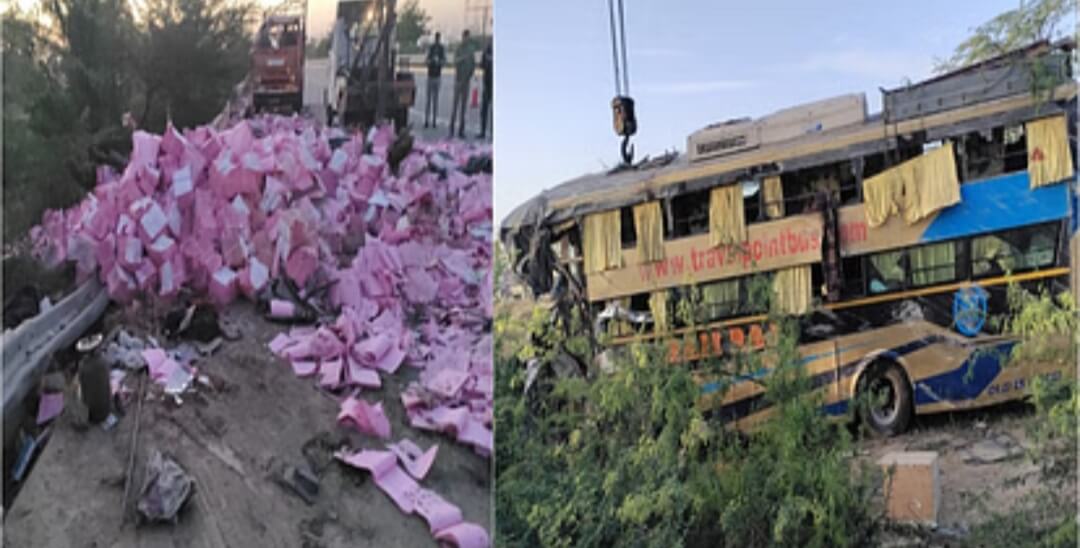 मथुरा के बलदेव थाना क्षेत्र में यमुना एक्सप्रेस माइल स्टोन-147 गांव मगना-बरौली के समीप सुबह चार बजे ट्रक में पीछे से तेज रफ्तार से बस ने जोरदार टक्कर मार दी। तेज रफ्तार के कारण बस अनियंत्रित होकर ट्रक से टकरा गई। डिवाइडर तोड़कर सर्विस रोड पर जा कर गिर पड़ी। ट्रक का चालक और बस में सवार लगभग 15 सवारियां गंभीर रूप से घायल हो गईं। थाना प्रभारी त्रिलोकी सिंह ने बताया ट्रक नोएडा से आगरा की ओर जा रहा था। ट्रक में उत्तर प्रदेश राज्य निर्वाचन आयोग गणना पत्रक के बंडल भरे हुए थे। ये मिर्जापुर ले जाए जा रहे थे। पीछे से तेज रफ्तार में आ रही बस अनियंत्रित होकर ट्रक में जोरदार टक्कर मारते हुए डिवाइडर तोड़ कर सर्विस रोड पर जा गिरी। बस जालौन जा रही थी, जिसमें करीब 15 सवारी बैठी थीं। सवारी गंभीर रूप से घायल हो गईं। हादसे में ट्रक चालक के साथ बस में मौजूद लगभग 15 व्यक्ति घायल हो गए। बस बैरिकेड़िंग तोड़कर नीचे सर्विस रोड पर पलट गई। निर्वाचन आयोग को घटना की जानकारी दे दी गई है। दोनों वाहन क्षतिग्रस्त हो गए। घायलों को उपचार हेतु एसएन मेडिकल आगरा अस्पताल भेजा गया है।