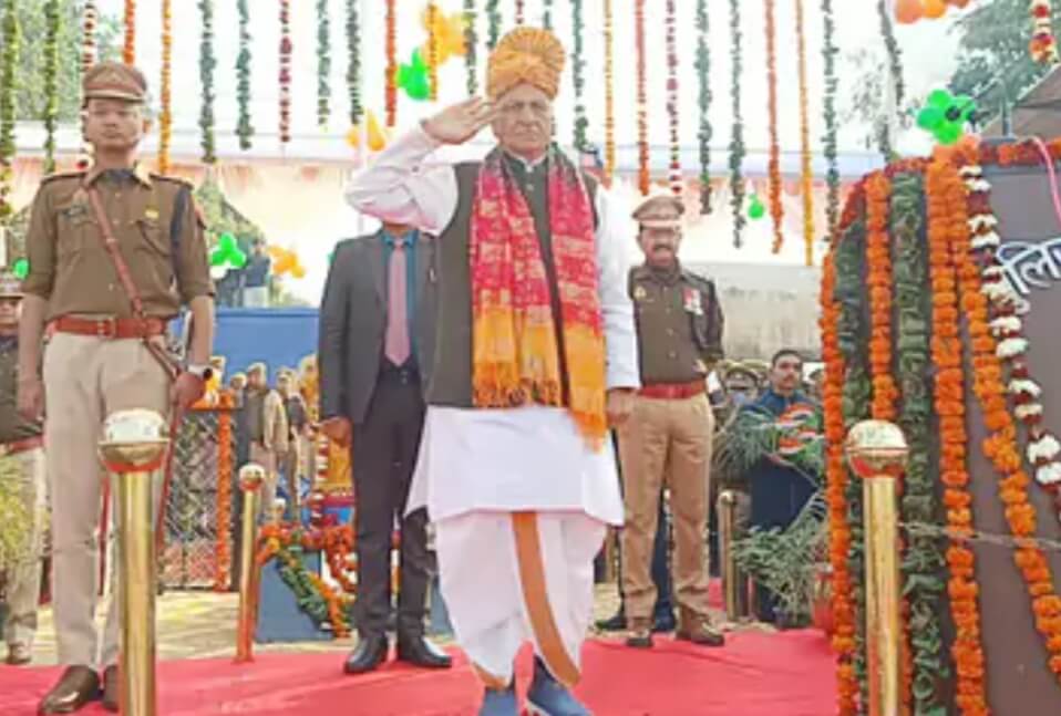मथुरा पुलिस लाइन परिसर में 77वां गणतंत्र दिवस समारोह आयोजित किया गया। उत्तर प्रदेश सरकार के कैबिनेट गन्ना विकास मंत्री चौधरी लक्ष्मी नारायण मुख्य अतिथि के रूप में उपस्थित रहे। कार्यक्रम का शुभारंभ ध्वजारोहण के साथ हुआ। इस दौरान उपस्थित अधिकारियों, पुलिसकर्मियों और आमजन ने राष्ट्रीय गान गाया, तिरंगे को सलामी दी और अमर शहीदों को श्रद्धांजलि अर्पित की। मंत्री चौधरी लक्ष्मी नारायण के आगमन पर वरिष्ठ पुलिस अधीक्षक श्लोक कुमार और जिलाधिकारी चंद्रप्रकाश सिंह सहित अन्य प्रशासनिक व पुलिस अधिकारियों ने उनका स्वागत किया। इसके बाद पुलिस लाइन में सांस्कृतिक कार्यक्रम प्रस्तुत किए गए। पुलिसकर्मियों और जनपद के विभिन्न स्कूलों के छात्र-छात्राओं ने देशभक्ति पर आधारित रंगारंग प्रस्तुतियां दीं। ब्रज की प्रसिद्ध फूलों की होली का भी आयोजन हुआ। इसमें भगवान श्रीकृष्ण और राधा के स्वरूप में सजे छात्र-छात्राओं ने फूलों की होली खेली। इस अवसर पर कैबिनेट मंत्री चौधरी लक्ष्मी नारायण ने स्वतंत्रता संग्राम सेनानियों के संघर्ष और बलिदान को याद किया।