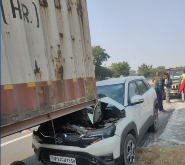 मथुरा। महावन के यमुना एक्सप्रेस-वे पर शनिवार दोपहर सड़क हादसे में कार आगे चल रहे ट्रक से टकरा गई। हादसे में कार सवार दो महिलाएं घायल हो गईं, जिन्हें उपचार के लिए आगरा भेजा गया है। हादसा यमुना एक्सप्रेस-वे के माइल स्टोन 119 महावन थाना क्षेत्र के पास हुआ। गाजियाबाद के कनावली-इंद्रनगर निवासी रोहित नागर अपनी मां बबिता और पत्नी संजना के साथ कार से आगरा जा रहे थे। दोपहर लगभग डेढ़ बजे उनकी कार आगे चल रहे ट्रक के अचानक ब्रेक लगा देने से पीछे से ट्रक से जा टकराई। टक्कर इतनी तेज थी कि कार का अगला हिस्सा क्षतिग्रस्त हो गया। दुर्घटना में कार में सवार बबिता और संजना को चोटें आईं। महावन थाना पुलिस मौके पर पहुंची और घायलों को एम्बुलेंस की मदद से उपचार के लिए आगरा भेज दिया। पुलिस ने क्षतिग्रस्त वाहनों को सड़क से हटवाकर यातायात को सुचारू कराया। क्षेत्राधिकारी संजीव कुमार राय ने बताया कि कार चालक की ओर से ट्रक चालक के खिलाफ प्रार्थना पत्र दिया गया है। मामले की जांच की जा रही है।