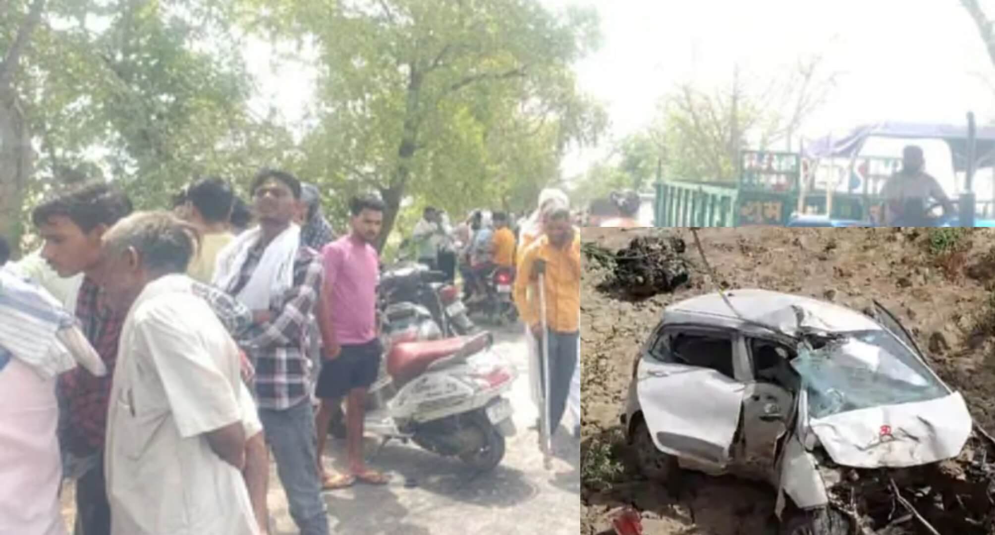 कार ने बाइक में सामने से मारी टक्कर, पति-पत्नी और देवर की मौत