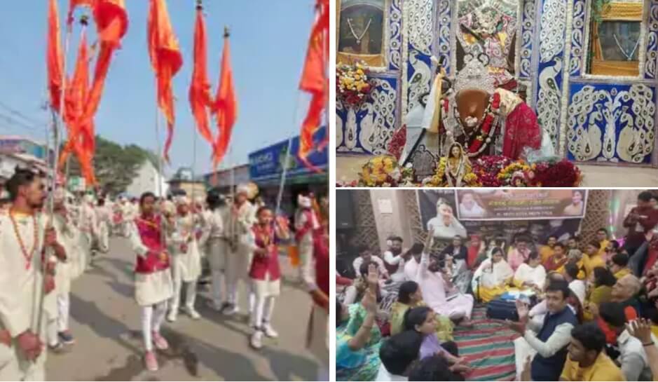 मथुरा। व्रन्दावन में भगवान बांके बिहारी जी के प्रकट्य उत्सव पर विभिन्न कार्यक्रम आयोजित किए गए। सुबह जहां भव्य शोभायात्रा निकाली गई। वहीं रात को प्रकट्य स्थली निधिवन में आतिशबाजी का नजारा देखने को मिला। आतिशबाजी से पहले भजन संध्या में भजन गायक ने लाडले को भजनों से रिझाया तो भक्त झूमने को मजबूर हो गए। अपने आराध्य को प्रकट्य उत्सव की बधाई दी। भगवान बांके बिहारी की शोभायात्रा निधिवन से शुरू हुई। शोभायात्रा में विभिन्न झांकियां थीं तो भक्त शोभायात्रा के आगे आगे सोहनी ( झाड़ू) लगाते हुए चल रहे थे। शोभायात्रा में सबसे ज्यादा आकर्षण का केंद्र थे महाराष्ट्र के मुंबई और नागपुर से आए बैंड। महाराष्ट्र से आए पीएसएम बैंड और नागपुर से आए शिवांग बैंड की धुन ने भक्तों को मंत्र मुग्ध कर दिया। शिवांग बैंड में आए 90 सदस्यों में से 40 महिला सदस्य एक सुर ताल में ढोल बजा रहे थे। भगवान बांके बिहारी जी के भक्तों द्वारा 5 वर्ष पूर्व बनवाए गए चांदी के रथ में विराजमान होकर स्वामी हरिदास जी शोभायात्रा के साथ बधाई देने के लिए निकले। नगर के विभिन्न मार्गों से होते हुए शोभायात्रा बांके बिहारी जी मंदिर पहुंची। यहां स्वामी हरिदास जी का छवि चित्र उनके लाडले ठाकुर भगवान बांके बिहारी जी के समक्ष रखा गया। मान्यता है कि भगवान बांके बिहारी जी के प्राकट्य दिवस पर बधाई देने के लिए निधिवन से बांके बिहारी मंदिर आते हैं।