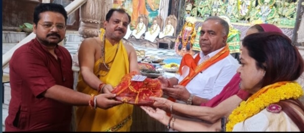 मन्दिर के वरिष्ठ सेवायत आचार्य करुण गोस्वामी महाराज ने उन्हें विधिवत वैदिक मंत्रोच्चार के मध्य देहरी पूजन करवाया।साथ ही मन्दिर के महात्म्य को विस्तार पूर्वक बताया।