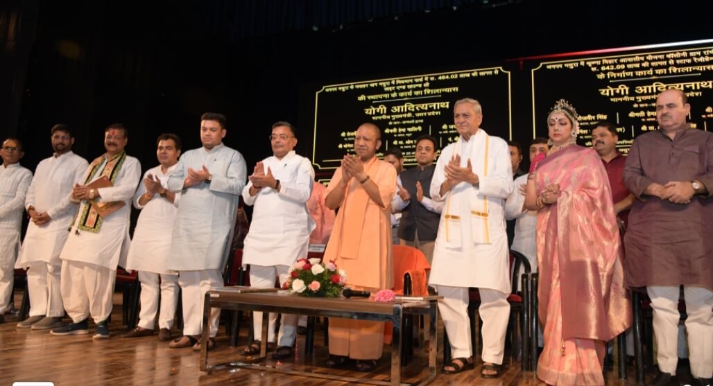 मथुरा 25 अगस्त। 5251 वां श्रीकृष्ण जन्माष्टमी महामहोत्सव के पावन अवसर पर मा० मुख्यमंत्री श्री योगी आदित्यनाथ जी का जनपद मथुरा में आगमन हुआ। मा० मुख्यमंत्री जी ने मथुरा के डैंपियर नगर स्थित पांचजन्य प्रेक्षागृह (ऑडिटोरियम) का फीता काटकर उद्घाटन किया। उ०प्र० ब्रज तीर्थ विकास परिषद द्वारा रूपये 1962.52 लाख में पांचजन्य प्रेक्षागृह को बनवाया गया है। उक्त प्रेक्षागृह में लगभग 900 लोगों के बैठने का स्थान है। पांचजन्य प्रेक्षागृह उद्घाटन के पश्चात मा० मुख्यमंत्री जी ने एक विशालकाय गुब्बारा आसमान / आकाश में छोड़कर पावन-पुनीत श्रीकृष्ण जी का 5251वें जन्मोत्सव कार्यक्रम का शुभारम्भ किया। उसी समय जनपद के अन्य प्रमुख 17 स्थानों पर गुब्बारे उड़ाए गए। इसी के साथ जनपद में 5 बड़े मंच, 19 छोटे मंच और 20 प्रमुख मार्गों पर सांस्कृतिक कार्यक्रमों का शुभारंभ हुआ। इस वर्ष भगवान श्रीकृष्ण जी का 5251वां जन्माष्टमी महामहोत्सव पूरे देश एवं प्रदेश में हर्षोल्लास एवं धूमधाम से मनाया जा रहा है। लाखों की संख्या में श्रद्धालु श्री कृष्ण जन्मभूमि के दर्शन करने आते है। मा० मुख्यमंत्री श्री योगी आदित्यनाथ जी ने पांचजन्य प्रेक्षागृह में मां सरस्वती जी के समक्ष दीप प्रज्जवलन एवं पुष्प अर्पित कर कार्यक्रम का शुभारम्भ किया। शुभारम्भ के दौरान संपूर्ण प्रेक्षागृह शंख वादन से गूंजता रहा। मा० मुख्यमंत्री जी का स्वागत 5251 फूलों से बनी माला से किया गया। मा० मुख्यमंत्री जी को उत्तर प्रदेश ब्रज तीर्थ विकास परिषद के उपाध्यक्ष श्री शैलजा कांत मिश्र जी एवं मण्डलायुक्त श्रीमती रितु माहेश्वरी जी ने कान्हा – माखन – मटकी पेंटिग / चित्र देकर स्वागत किया। कार्यक्रम में मा० मुख्यमंत्री जी ने उत्तर प्रदेश ब्रज तीर्थ विकास परिषद द्वारा संकलित मीरा ग्रंथ तथा पद्मीनी कोल्हापुरी के भजन एलबम का विमोचन किया। उसके पश्चात प्रेक्षागृह में मा० मुख्यमंत्री जी के समक्ष जनपद मथुरा के विभिन्न विकास कार्यों से संबंधित वीडियो फिल्म का प्रदर्शन किया गया, जिसको प्रेक्षागृह में उपस्थित सभी गणमान्य व्यक्तियों ने भी देखा।