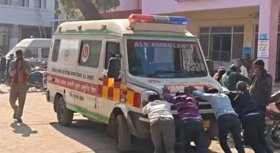 मथुरा में बेहतर स्वास्थ्य सेवाओं का दावा खोखला , एम्बूलेंस में धक्का लगाने का वीडियो वायरल