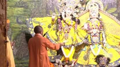 मथुरा में मुख्यमंत्री योगी आदित्यनाथ के दौरे का आज दूसरा दिन है। उन्होंने दूसरे दिन की शुरुआत भगवान श्रीकृष्ण के दर्शन के साथ की। सीएम योगी सुबह-सुबह ही श्रीकृष्ण जन्मभूमि पर पहुंच गए। उन्होंने जन्मभूमि स्थित भागवत भवन में विधि-विधान से पूजा अर्चना की। श्रीराधाकृष्ण के विग्रह की आरती उतारी। बता दें कि मुख्यमंत्री योगी आदित्यनाथ मंगलवार को देर शाम मथुरा पहुंचे थे। चंडीगढ़ से आगरा पहुंचने में हुई देरी के कारण उनका मथुरा आगमन भी करीब ढाई घंटे देरी से हुआ। बारिश के कारण महारास कार्यक्रम स्थगित होने पर उन्हें सीधे रात्रि विश्राम के लिए यूपी वेटरनेरी विश्वविद्यालय के गेस्ट हाउस ले जाया गया। बुधवार की सुबह मुख्यमंत्री योगी ने वेटरनरी विश्वविद्यालय के गेस्ट हाउस परिसर में आम का पौधा लगाया। इसके बाद श्रीकृष्ण जन्मभूमि के लिए रवाना हो गए। श्रीकृष्ण जन्मभूमि पर दर्शन करने के बाद मुख्यमंत्री योगी ने भक्ति वेदांत गुरुकुल व इंटरनेशनल स्कूल परिसर में स्थित भगवान श्रीकृष्ण बलराम मंदिर का लोकार्पण किया। उन्होंने यहां पूजन किया। सीएम ने यहां गुरुकुल की ओर से संचालित गो डेयरी प्लांट का लोकार्पण भी किया। इस डेयरी प्लांट की क्षमता 25 हजार लीटर दूध प्रतिदिन की है। यहां पर गाय के दूध से उत्पाद तैयार किए जाएंगे।
