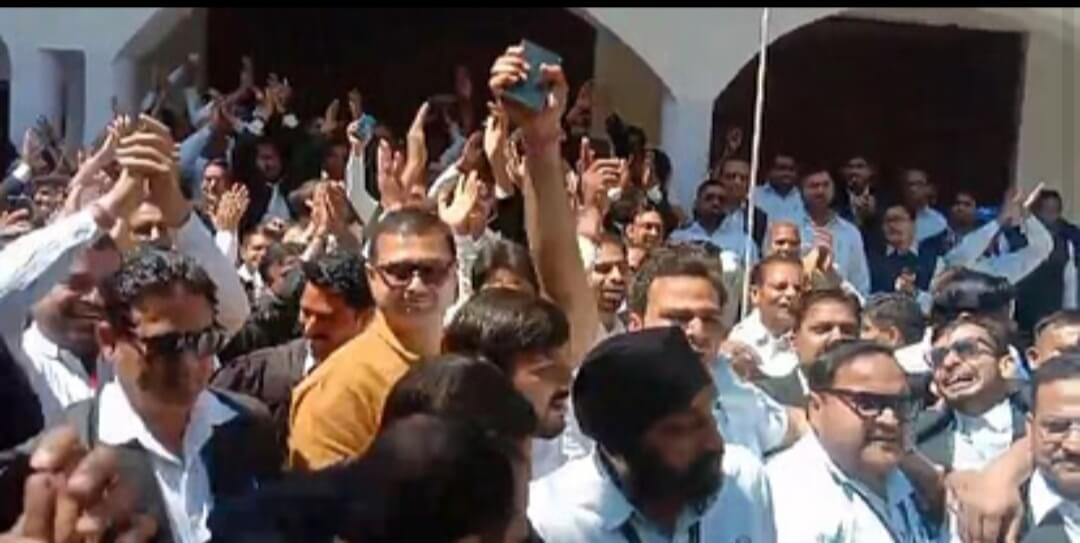 मथुरा। साथी अधिवक्ता की पिटाई के मामले में सोमवार से पुलिस और अधिवक्ताओं के बीच चल रहा विवाद बुधवार को समझौते के बाद समाप्त हो गया। अधिवक्ताओं ने हड़ताल समाप्ति की घोषणा कर दी। बार एसोसिएशन के अध्यक्ष प्रदीप कुमार शर्मा और सचिव शिव कुमार लवानियां ने बताया कि पुलिस और अधिवक्ताओं के बीच समझौता हो गया है। पुलिस साथी अधिवक्ता अमरजीत के खिलाफ हुए मुकदमे को खत्म करेगी। इसके साथ ही मंगलवार को हंगामे के दौरान अधिवक्ताओं ने जो कानून व्यवस्था बिगाड़ी उस मामले में किसी के खिलाफ मुकदमा दर्ज नहीं होगा। आरोपी चौकी प्रभारी विक्रांत तोमर ने पीड़ित अधिवक्ता और उसके परिजन को गले लगाया और अपनी गलती स्वीकार की। मंगलवार को हंगामे के दौरान बिगड़ी कानून व्यवस्था पर बार की ओर से पुलिस को आश्वासन दिया गया कि भविष्य में इस तरह की पुनरावृत्ति नहीं होगी। पुलिस और अधिवक्ताओं में समझौता होने के बाद अधिवक्ता कचहरी में काम शुरू कर देंगे।