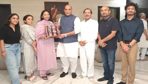 जीएलए विश्वविद्यालय के कुलपति से घर जाकर मिले रक्षामंत्री राजनाथ