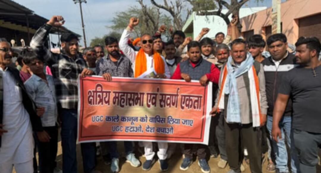 मथुरा। थाना जैंत क्षेत्र के गांव नगला बिहारी में ब्रजमंडल क्षत्रिय राजपूत सभा की ओर से यूजीसी के विरोध में प्रदर्शन किया गया। सभा के पदाधिकारियों और स्थानीय ग्रामीणों ने सरकार की नीतियों के खिलाफ नारेबाजी की। प्रदर्शन का नेतृत्व कर रहे प्रदेश अध्यक्ष मुकेश सिकरवार ने कहा कि सरकार द्वारा यूजीसी के नए प्रावधान लागू करने का निर्णय सामाजिक ताने-बाने के लिए घातक सिद्ध होगा। सिकरवार ने मांग की कि सरकार को तुरंत इसे वापस लेकर समाज में एकजुटता और समरसता का भाव पैदा करना चाहिए। संगठन के वरिष्ठ सदस्य मनोज सिंह ने कहा कि यदि सरकार ने इसे जल्द वापस नहीं लिया, तो आने वाले समय में आंदोलन को और तेज किया जाएगा। प्रदर्शन में मनोज ठाकुर, कन्हैया सिंह, जगदीश सिंह गौर, राजू ठाकुर, हरिचंद प्रधान, मग्गी ठाकुर, भगत सिंह, ओमप्रकाश, राजकुमार तोमर और गगन ठाकुर आदि मौजूद रहे।