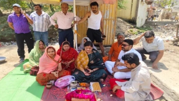 मथुरा। मथुरा वृंदावन नगर निगम द्वारा श्रद्धालुओ की सुविधा के लिए महानगर के गऊ घाट क्षैत्र में चिंता हरण मन्दिर के समीप सुलभ पब्लिक लॉन्ज का गुरुवार को वार्ड 58 की पार्षद नीलम गोयल द्वारा पूजन अर्चन कर भूमि पूजन किया गया। पार्षद नीलम गोयल ने बताया कि यहाँ हजारों श्रद्धालु परदेशी प्रति दिन कंस किला द्वारिकाधीश मन्दिर दर्शन को आते है। वह सबसे पहले गऊघाट ही पहुचते है लेकिन आस पास एक भी शोचालय ना होने के कारण उन्हें बहुत समस्याओं का सामना करना पड़ता था अब उन्हें कही भी भटकना नही पड़ेगा। उन्हें पब्लिक लांज में सभी स्नान घर चेंजिग रूम ओर 10 शीटर शौचालय बाथरूम उपलव्ध होगा। पूरे नगर निगम इलाके में इस तरह के 11 सुलभ पब्लिक लॉन्ज बनाये जाएंगे जिसमे एक के निर्माण पर करीब 20 लाख रु की लागत आएगी। भूमि पूजन में चिंता हरण मन्दिर के महंत राजू बाबा गुड्डा पंडित बब्बू पंडित भाजपा नेता हेमन्त खंदौली सुलभ इंटरप्राइजेज के जॉय दिवाकर आदि मौजूद रहे।
