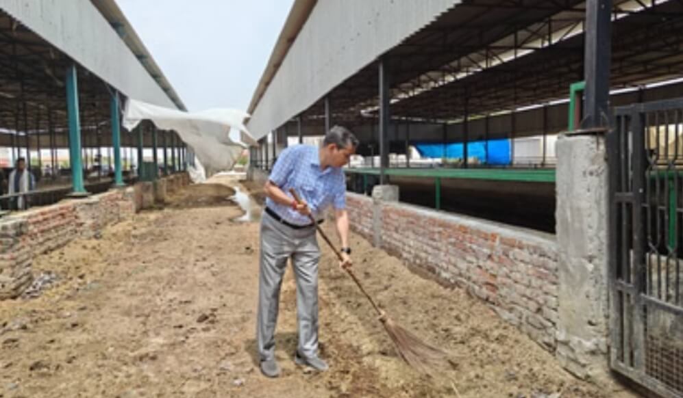 मथुरा। जिलाधिकारी चंद्र प्रकाश सिंह ने रामनवमी पर राल स्थित ब्रह्मऋषि देवरहा बाबा गो-आश्रय स्थल का निरीक्षण करने के बाद झाड़ू लगाई। साफ-सफाई के बाद गो पूजन करके गोवंश को हरा चारा खिलाया। डीएम ने गोशाला परिसर में स्थित गोधाम गुरुकुल (स्कूल) के बच्चों को रामनवमी पर मिष्ठान्न वितरण किया। बच्चों द्वारा बनाए गए विभिन्न शिल्प/ हस्तकला का अवलोकन किया। उन्होंने बच्चों से पढ़ाई एवं भोजन के बारे में भी जानकारी ली। इसके पहले डीएम और एडीएम डॉ. पंकज कुमार वर्मा ने गोशाला में साफ सफाई करवाई। डीएम ने अवगत कराया है कि ब्रह्मऋषि देवरहा बाबा गो-आश्रय स्थल में लगभग 8600 गोवंश संरक्षित है। गोशाला 136 एकड़ में बनी हुई है, जिसमें गोवंशों हेतु 27 शेड उपलब्ध है। यहां गोबर से बनाए जाए ने वाले साबुन, फेसवॉश, दीपक, फिनायल, घी, धूपबत्ती आदि का अवलोकन किया। उन्होंने गोवंश के नियमित स्वास्थ्य परीक्षण और हरे चारे की व्यवस्था के निर्देश दिए।