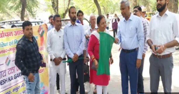 मथुरा। अखिल भारतीय फार्मासिस्ट एसो. द्वारा आयोजित मतदाता जागरूकता रैली को हरी झंडी दिखाकर जिलाधिकारी / जिला निर्वाचन अधिकारी शैलेंद्र कुमार सिंह एवं स्वीप नोडल अधिकारी / मुख्य विकास अधिकारी मनीष मीना ने रवाना किया। मतदाता जागरूकता रैली जिलाधिकारी कार्यालय से प्रारंभ हुई जिसमें फार्मेसी पाठ्यक्रम में अध्यनरत विभिन्न संस्थाओं के साथ साथ छात्राओं ने भाग लिया। रैली रजिस्ट्री कार्यालय से होती हुई तहसील प्रांगण पहुंची जिसको राजकीय महाविद्यालय मांट मथुरा के राष्ट्रीय सेवा योजना के स्वयंसेवकों द्वारा लीड किया गया।