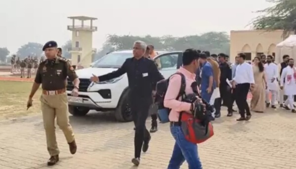 मथुरा। वृंदावन में रविवार को प्रदेश के मुख्यमंत्री योगी आदित्यनाथ हेलीकॉप्टर द्वारा पवन हंस हेलीपैड पर आए। यहां उनकी अगवानी कैबिनेट मंत्री चौधरी लक्ष्मी नारायण सहित आगरा मंडल की कमिश्नर रितु माहेश्वरी जिला अधिकारी शैलेंद्र सिंह एसएसपी शैलेश पाण्डेय द्वारा की गई। यहां से मुख्यमंत्री कार द्वारा बिहारी जी के दर्शन करने मंदिर पहुंचे इस बीच डीएम और एस एसपी को गाड़ी में बैठने के लिए दौड़ लगानी पड़ गई। पवन हंस हेलीपैड से बिहारी जी मंदिर तक का मार्ग काफी साफ सुथरा दिखाई दिया। नगर निगम के कर्मचारी सुबह तक सफाई कार्य में लगे देखे गए। मुख्यमंत्री बिहारी जी के दर्शन करने के पश्चात मथुरा पुलिस लाइन आएंगे। बिहारी जी के दर्शन करने के बाद मुख्यमंत्री श्री मदन मोहन मंदिर गए वहां उन्होंने दर्शन कर सेवायतों से बातचीत की।