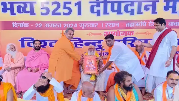 मथुरा। वृंदावन में भगवान श्री कृष्ण के 5251 वे जन्मोत्सव के अवसर पर विश्व हिंदू परिषद मथुरा महानगर और ग्रामीण के द्वारा देवराह बाबा घाट वृंदावन धाम यमुना जी पर 5251 दीप दान और फूल बंगला का भव्य कार्यक्रम आयोजित किया गया। कार्यक्रम में वृंदावन के संतजन कथा व्यास हिंदू संगठनों के साथ साथ हजारों पदाधिकारी और कार्यकर्ताओं ने सहभागिता की। कार्यक्रम की अध्यक्षता नाभा पीठाधीश्वर महंत सुतीक्ष्ण दास महाराज सुदामा कुटी के द्वारा की गई वही मंच का संचालन संत ज्ञानेंद्र द्वारा किया। आयोजक विश्व हिंदू परिषद महानगर अध्यक्ष कन्हैया लाल अग्रवाल और ग्रामीण जिला अध्यक्ष विनोद राघव द्वारा आए हुए समस्त साधु संतो और विश्व हिंदू परिषद पदाधिकारियों का पटुका और भगवान श्री योगी राज का छाया चित्र भेट कर सम्मान किया गया। उसके उपरांत भजन संध्या का भव्य आयोजन हुआ। क्षेत्रीय संगठन मंत्री सोहन सिंह ने सम्बोधित करते हुए हिंदू को एक जुट होने का आवाहन किया गया। उन्होंने कहा की अगर हिंदू जाति पांति को छोड़ कर अगर एक नही हुए तो बंगलादेश जैसा हाल होने में समय नहीं लगेगा। कार्यक्रम के समापन में विश्व हिंदू परिषद के समस्त पदाधिकारियों के द्वारा 5251 दीप प्रज्ज्वलित कर मां यमुना को समर्पित किए। मां यमुना के भव्य फूल बंगला और मां यमुना की गोद में बनाई गई भगवान श्री कृष्ण की भव्य कलाकृति को देख कर सभी पदाधिकारी और संतजनो का मन आनंदित हो गया। कार्यक्रम में महंत राम स्वरूप ब्रह्मचारी महंत फूल डोल महाराज पीठाधीश्वर धर्माचार्य महंत बलराम दास महाराज उमा पीठाधीश्वर रामदेवनानंद महाराज महंत मदन मोहन दास महाराज राजेश सिंह प्रांत संगठन मंत्री मुकेश शुक्ला प्रांत सह संगठन मंत्री उमाकांत विभाग संगठन मंत्री योगेश गौतम जिला मंत्री बी.एल पांडेय जिला प्रचार प्रसार प्रमुख आदि पदाधिकारी और संत जन मौजूद रहे।