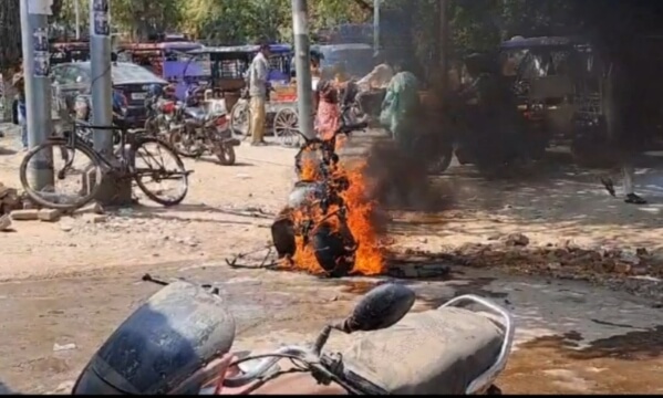 मथुरा। व्रन्दावन में पागल बाबा मंदिर के समीप रिपेयरिंग के दौरान हीरो प्लेजर स्कूटी में अचानक आग लग गई। आग की तेज लपटों और धुएं के गुबार से क्षेत्र में अफरातफरी मच गई। मौके पर पहुंची दमकल की गाड़ी ने आग पर काबू पाया। हालांकि तब तक स्कूटी पूरी तरह जलकर नष्ट हो गई। घटना वृंदावन में पागल बाबा मंदिर के पास की है। यहां पानीगांव निवासी मानवेंद्र स्कूटी हीरो प्लेजर से वृंदावन की ओर जा रहे थे। रास्ते में तकनीकी खराबी आने के कारण स्कूटी बंद हो गई। वह उसे पैदल पागल बाबा मंदिर के पास एक मिस्त्री की दुकान पर ले गए। मानवेंद्र ने बताया कि मिस्त्री ने गाड़ी के कार्वेटर को खोलकर सेल्फ का बटन दबाया तो स्कूटी में अचानक आग निकलने लगी। जब तक वह कुछ समझ पाता तब तक आग ने विकराल रूप ले लिया। आग की घटना से क्षेत्र में अफरातफरी मच गई। मौके पर आसपास के लोगों की भीड़ लग गई। घटना की सूचना पुलिस और फायर ब्रिगेड टीम को दी गई। सूचना पर अद्धा पुलिस चौकी प्रभारी रणजीत सिंह नागर पहुंचे। दमकल की गाड़ी भी मौके पर पहुंच गई। जब तक दमकलकर्मियों ने आग बुझाई, तक तब स्कूटी पूरी तरह जलकर नष्ट हो गई। पुलिस चौकी प्रभारी ने बताया कि स्कूटी में आग का कारण स्पष्ट नहीं हो सका है। पुलिस मामले की जांच कर रही है।