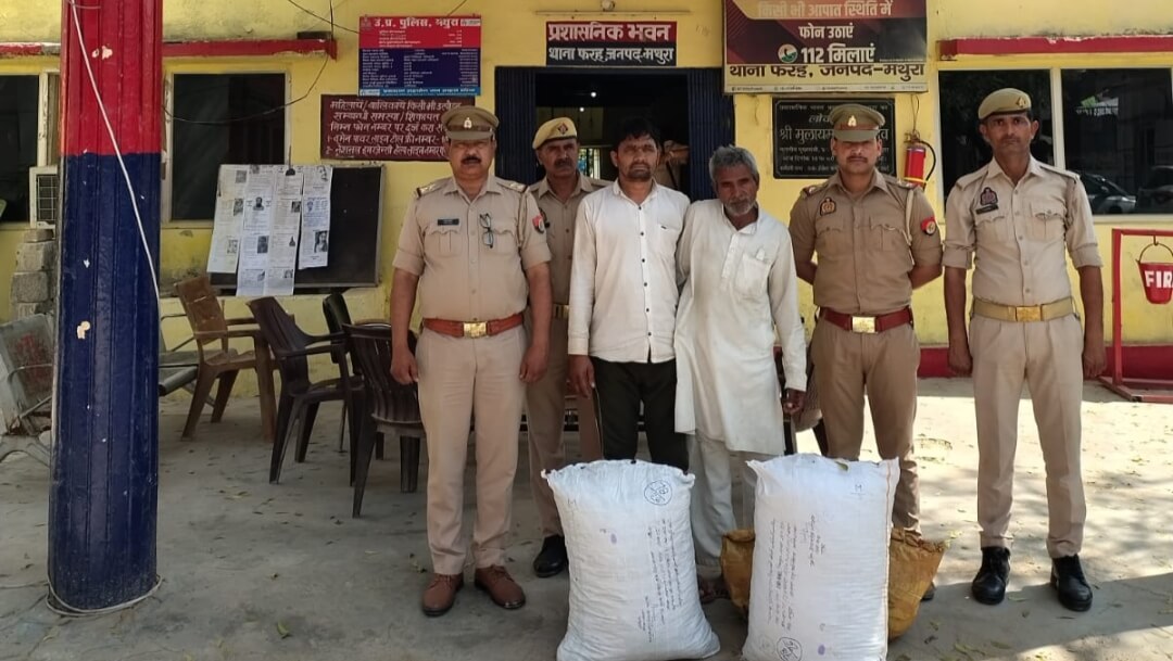 मथुरा में फरह पुलिस और स्वाट टीम ने संयुक्त कार्रवाई करते हुए दो व्यक्तियों को गिरफ्तार किया है। उनके पास से लगभग 29 किलो 760 ग्राम अवैध गांजा और एक मोटरसाइकिल बरामद की गई। यह कार्रवाई नशे के खिलाफ चलाए जा रहे अभियान के तहत की गई। पुलिस के मुताबिक, फरह पुलिस और स्वाट टीम क्षेत्र में गश्त कर रही थी। नगला दौजी की पुलिया से अछनेरा रोड की ओर आ रहे दो संदिग्ध व्यक्तियों को रोका गया। तलाशी लेने पर उनके पास से अवैध गांजा मिला, जिसके बाद उन्हें मौके पर ही गिरफ्तार कर लिया गया। गिरफ्तार आरोपियों की पहचान पप्पू उर्फ महेंद्र (45 वर्ष) पुत्र रामस्वरूप निवासी बबरौद, थाना अछनेरा, जनपद आगरा और गोपाल (58 वर्ष) पुत्र चंदन निवासी भाहई, थाना रिफाइनरी, जनपद मथुरा के रूप में हुई है। ये दोनों मोटरसाइकिल संख्या UP80FE6950 से गांजे का परिवहन कर रहे थे। बरामदगी के बाद, फरह थाना पुलिस ने आरोपियों के खिलाफ मुकदमा संख्या 78/2026, धारा 8/20 एनडीपीएस एक्ट के तहत मामला दर्ज किया है। आगे की विधिक कार्रवाई जारी है। पुलिस जांच में यह भी पता चला है कि आरोपी पप्पू उर्फ महेंद्र का आपराधिक इतिहास है। उसके खिलाफ वर्ष 2008 में थाना गोवर्धन में धारा 323, 498ए, 506 भादवि और दहेज प्रतिषेध अधिनियम के तहत मुकदमा दर्ज किया गया था। पुलिस ने बताया कि क्षेत्र में नशे के कारोबार के खिलाफ सख्त कार्रवाई की जा रही है। ऐसे अवैध धंधों में लिप्त व्यक्तियों के खिलाफ भविष्य में भी अभियान जारी रहेगा।