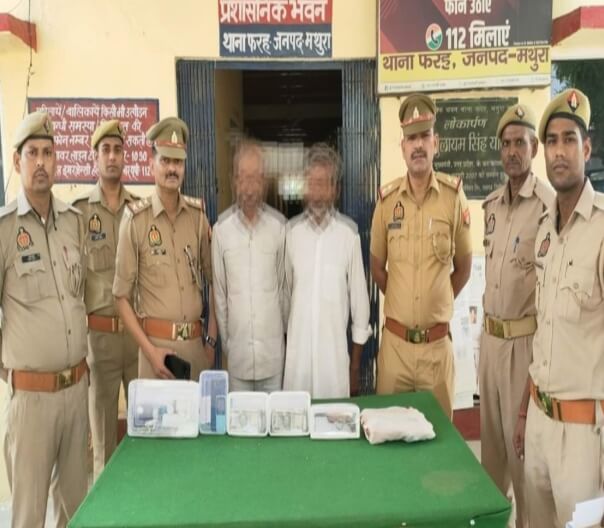 मथुरा। जिले में आपराधिक वारदात को अंजाम देने वाले टटलू गैंग के दो सदस्यों को फरह पुलिस ने गिरफ्तार किया है। आरोपियों के कब्जे से 1,39,640 रुपये, तमंचा और कारतूस बरामद किया है। पुलिस की गिरफ्त में आए मुकेश उर्फ मनोज पुत्र विजेंद्र सिंह निवासी 141 आवास विकास काॅलोनी, मैनपुरी हाल निवासी राजहंस कालोनी गोवर्धन चौराहा और भाग सिंह पुत्र कन्नीराम निवासी गोलपुरा, कुम्हेर (राजस्थान) ने कस्बे में टटलूबाजी की वारदात की अंजाम दिया था। मुकदमा दर्ज करने के बाद से पुलिस आरोपियों की तलाश में जुटी हुई थी। मुखबिर की सूचना पर पुलिन ने गढ़ी पचौरी से परखम नहर जाने वाले मार्ग पर घेराबंदी कर बाइक सवार दोनों बदमाशों को दबोच लिया। आरोपी मुकेश उर्फ मनोज के खिलाफ मथुरा जनपद में छह मुकदमे दर्ज हैं। भाग सिंह के खिलाफ पांच मुकदमे दर्ज है। आरोपियों को गिरफ्तार करने वाली टीम ने फरह थाने के प्रभारी निरीक्षक कमलेश सिंह, चौकी प्रभारी नितिन तेवतिया आदि शामिल रहे।