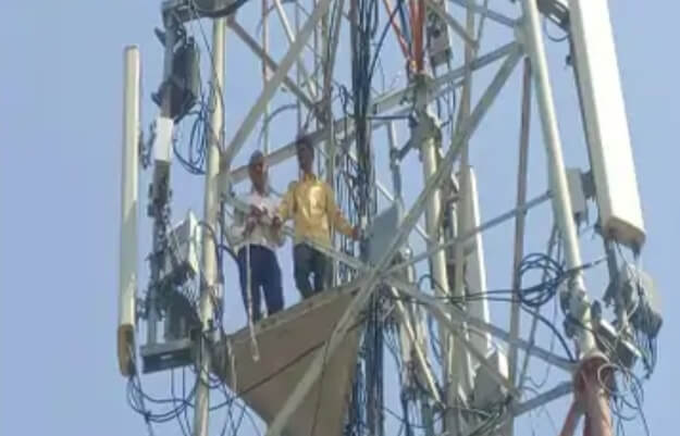 खेतों से पानी नहीं निकलने से थे परेशान,टॉवर पर चढ़े किसान