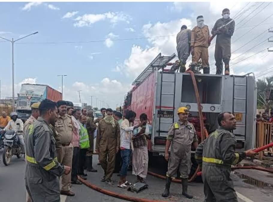 मथुरा। राष्ट्रीय राजमार्ग पर बेंगलुरु से नोएडा बैटरी लेकर जा रहे कंटेनर में अचानक आग लग गई। कंटेनर से धुआं उठने पर चालक-हेल्पर को जानकारी हुई तो कंटेनर को रोककर दमकल विभाग को सूचना दी। दमकल की तीन गाड़ियों ने आग पर काबू पाया।।कंटेनर के चालक शौकीन ने बताया कि वह शुक्रवार को बेंगलुरु से बैटरी लेकर नोएडा के लिए चले थे। मंगलवार को दोपहर करीब एक बजे राजमार्ग के मंडी चौराहे के पास जैसे ही पहुंचे, तो कंटेनर से धुंआ निकलने की जानकारी एक बाइक सवार युवक ने दी। चालक ने तुरंत ही कंटेनर को सड़क किनारे खड़ा किया और कूद गया। चालक ने दमकल विभाग को आग लगने की सूचना दी। दमकल के अधिकारी किशन सिंह तुरंत मौके पर पहुंचे। आग इतनी तेज थी कि तीन गाड़ी पानी फेंककर आग पर काबू पाया गया। दमकल के अधिकारियों ने बताया कि कंटेनर में रखी बैटरी में लीथियम भरा होने से इनके गत्ते में आग लग गई। बीआर रोड लाइंस कंपनी के मालिक सलीम ने बताया कि कंटेनर में करीब 5000 बैंटरियां भरी थीं, जिनकी अनुमानित कीमत करीब 50 लाख रुपये होगी।