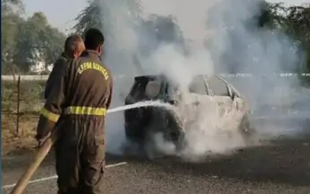 मथुरा के वृंदावन में चलती कार हादसे का शिकार हो गई। कार में आग लगने के कारण वह जलकर राख हो गई। सूचना मिलने पर मौके पर पहुंची दमकल ने आग पर काबू पाया। हादसे में गनीमत रही कि कोई जनहानि नहीं हुई। शनिवार की शाम को वृंदावन के चैतन्य बिहार इलाके में उस समय हड़कंप मच गया जब यहां एक चलती इको स्पोर्ट्स कार में आग लग गई। आग लगने की जानकारी मिलते ही पुलिस और दमकल की टीम को सूचना दी। सूचना मिलते ही पुलिस और फायर ब्रिगेड की टीम मौके पर पहुंच गई। चैतन्य बिहार इलाके के बुर्जा गांव निवासी राजकुमार यादव अपनी इको स्पोर्ट्स कार संख्या UP 85 AR 4430 से किसी काम से कहीं जा रहे थे। राजकुमार यादव पंचकुला भवन के पास पहुंचे ही थे कि तभी उसमें से धुआं निकलता दिखाई दिया। जिसे देख राजकुमार ने कार रोक कर खड़ी की और वह उसमें से कूदकर बाहर निकले ही थे तभी उसमें अचानक आग लग गई। आग की लपटों ने कुछ ही देर में पूरी कार को अपनी चपेट में ले लिया। आग की लपटों में घिरी कार को देख मौके पर भीड़ लग गई। सूचना मिलते ही दमकल की गाड़ी मौके पर पहुंच गई। दमकल की टीम ने कड़ी माशक्त के बाद आग पर काबू पाया। लेकिन तब तक कार जलकर खाक हो गई।