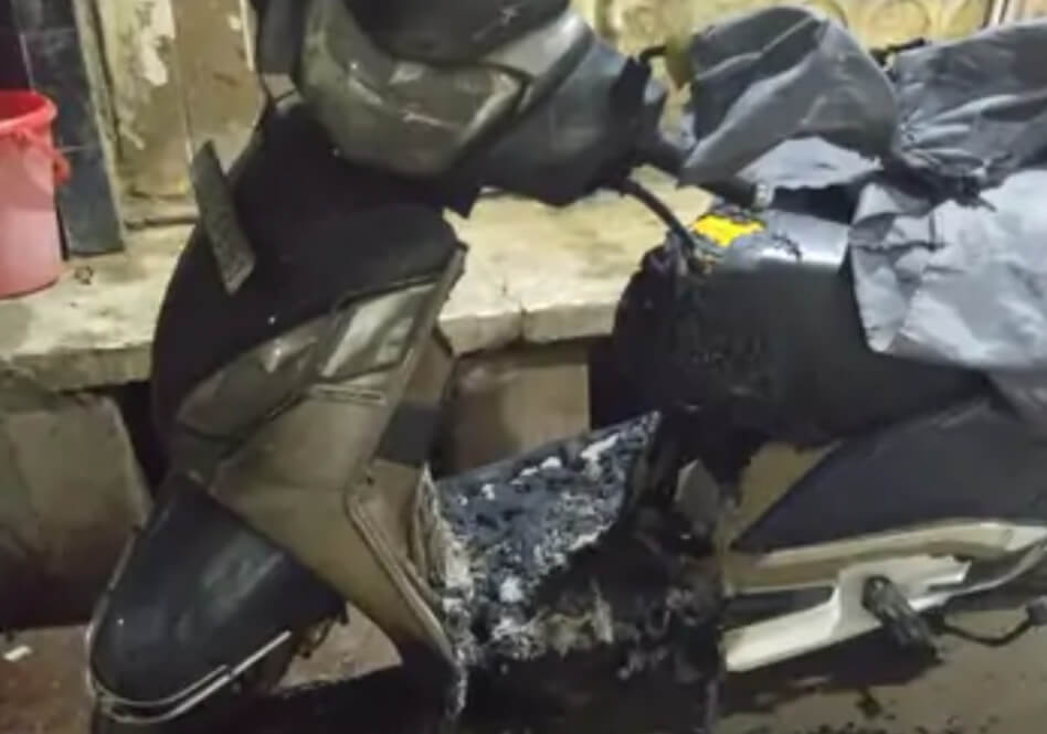 खड़ी स्कूटी में लगी आग:10 मिनट में जलकर खाक, पुलिस जांच में जुटी