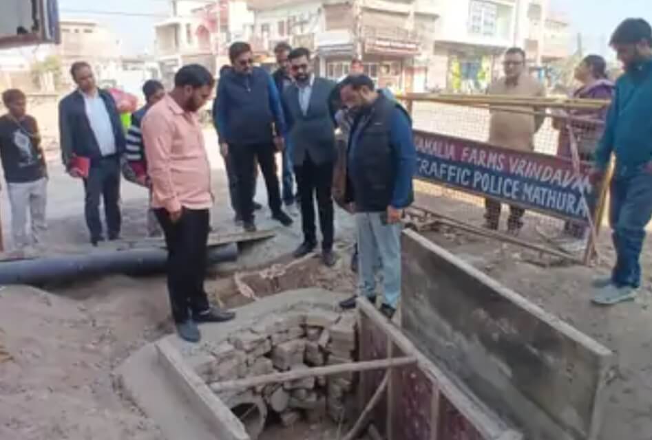 मथुरा में नगर आयुक्त जग प्रवेश ने सीएम-ग्रिड योजना के तहत बन रही गोविंद नगर रोड का अचानक निरीक्षण किया। निरीक्षण के दौरान निर्माण कार्य में कई गंभीर खामियां सामने आईं। मौके पर मुख्य अभियंता संजय चौहान, डेरा कंसल्टेंट मयंक गर्ग, पार्षद नीरज वशिष्ठ, पार्षद प्रतिनिधि धर्मेश तिवारी, पार्षद धनंजय चौधरी और पार्षद प्रतिनिधि कुंज बिहारी सहित अन्य अधिकारी व जनप्रतिनिधि मौजूद थे। निरीक्षण में हरिश राधव की कोठी के पास फुटपाथ पर लगी टाइलें मानकों के अनुरूप नहीं पाई गईं, कई जगह दरारें थीं। नगर आयुक्त ने इन्हें तुरंत ठीक कराने के निर्देश दिए। इसके अलावा, महाविद्या चौराहे और शौचालय के पास भूमिगत विद्युतीकरण के लिए बनाए गए चेम्बरों का आकार भी मानक के अनुसार नहीं पाया गया। इन चेम्बरों को तोड़कर दोबारा मानक के अनुरूप बनाने के आदेश दिए गए।