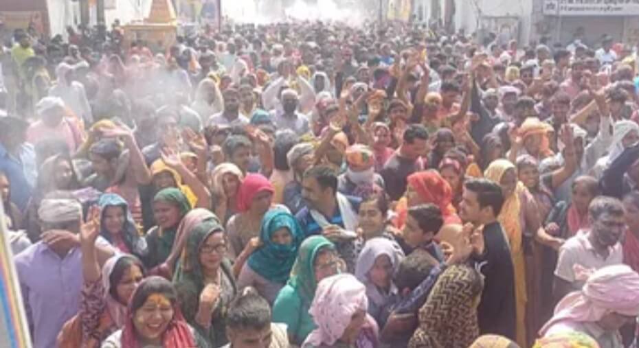 मथुरा। वृंदावन में रंगभरनी एकादशी पर श्रद्धालुओं का रेला उमड़ पड़ा। आराध्य ठा बांके बिहारी के दर्शन के लिए लाखों की संख्या में श्रद्धालु पहुंचे। इस मौके पर उन्होंने पंचकोसीय परिक्रमा करके खुद को धन्य किया। होली की मस्ती और ढोलकों की थाप पर थिरकते हुए श्रद्धालु आगे बढ़ते रहे। पांच कोसीय परिक्रमा मार्ग पर मानव शृंखला बन गई। श्रद्धालुओं ने एक-दूसरे पर जमकर अबीर-गुलाल उड़ाया। सुबह से ही श्रद्धालुओं का आना शुरू हुआ तो दिन चढ़ने के साथ यह बढ़ता ही गया। इसी प्रकार राधवल्लभ मंदिर, राधादामोदर मंदिर और ठा. राधारमण मंदिर में भी श्रद्धालु बड़ी संख्या में दर्शन करने पहुंचे। इन मंदिरों में भी सेवायत गोस्वामी श्रद्धालुओं पर गुलाल बरसा रहे हैं। इस बार मथुरा मुंसिफ कोर्ट न्यायालय द्वारा दर्शनार्थियों पर बांकेबिहारी मंदिर में गुलाल, रंग, फायर बिग्रेड सिलेंडर ले जाने पर रोक लगा दी है। रंगभरी एकादशी के अवसर पर भगवान राधा कृष्ण की भूमि वृंदावन में आस्था का सैलाब उमड़ पड़ा। पांच कोस की परिक्रमा में स्थिति ऐसी रही कि पैर रखने की जगह नहीं। पूरे परिक्रमा मार्ग में श्रद्धालु भगवान के भजन गाते हुए रंग गुलाल उड़ाते हुए परिक्रमा दे रहे थे। रंगभरी एकादशी पर्व से मथुरा वृंदावन के मंदिरों में भी जमकर रंग गुलाल उड़ाया गया।