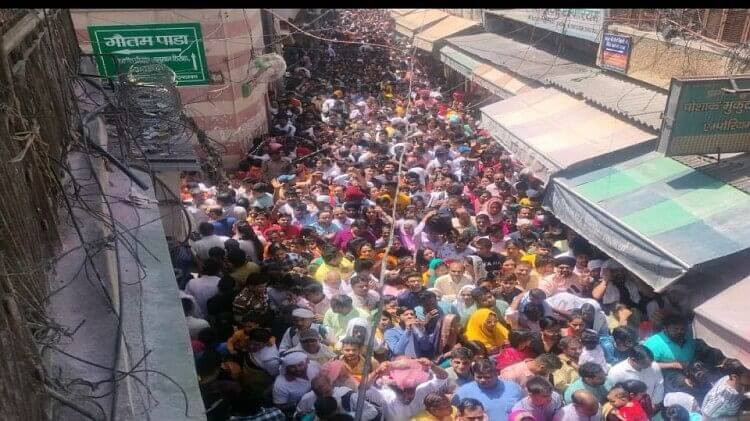 मथुरा। वृंदावन में ठाकुर बांके बिहारी के दर्शन के लिए रविवार को आस्था का सैलाब उमड़ पड़ा। मंदिर की तरफ जाने वाले रास्ते श्रद्धालुओं से भरे नजर आए। भीड़ के आगे प्रशासन के सारे इंतजाम धरे रह गए। बच्चे,, बुजुर्ग, महिलाएं ठाकुर श्रीबांके बिहारीजी की झलक पाने के लिए भीड़ के साथ आगे बढ़े जा रहे थे। मंदिर की ओर जाने वाले मार्गों पर जनसैलाब हिलोरें मार रहा था। भीड़ में फंसे बच्चों और महिलाओं का बुरा हाल था। बच्चे बिलबिला गए और महिलाएं चीख उठीं, लेकिन चाहकर भी भीड़ से बाहर निकलने का कोई रास्ता नहीं सूझा। जैसे तैसे मंदिर तक पहुंचे। मंदिर से विद्यापीठ चौराहे तक सिर्फ सिर ही सिर नजर आ रहे थे। यहां एक किलोमीटर से अधिक लंबी लाइन लग गई। रविवार को ठाकुर बांके बिहारी के दर्शन के लिए लोगों की भीड़ उमड़ पड़ी। मंदिर में प्रवेश के लिए बनाए गए गेट संख्या 2 और 3 से प्रवेश के लिए श्रद्धालु जूझते नजर आए। पुलिसकर्मी भीड़ को नियंत्रित करने का हर संभव प्रयास करते दिखे पर भीड़ थी कि कम होने का नाम नहीं ले रही थी। मंदिर की तरफ जाने वाले रास्ते श्रद्धालुओं से भर गए। रविवार को भीड़ के कारण मंदिर क्षेत्र का बाजार भी प्रभावित दिखाई दिया। विद्यापीठ चौराहे से मंदिर जाने वाले रास्ते पर अधिकांश दुकानें बंद रहीं। कारण दुकानदार भीड़ के आगे बेबस नजर आए। मंदिर प्रबंधन से जुड़े लोग भीड़ को नियंत्रित करने के लिए प्रयास करते नहीं नजर आए। इधर, वृंदावन में दिनभर जाम के हालात भी बने रहे। भीड़ के कारण सैकड़ों भक्त आराध्य के दर्शन से वंचित रह गए। भीड़ में जैसे-तैसे मंदिर तक पहुंचे, लेकिन भीड़ के एक झोंके ने उन्हें बाहर निकाल दिया। ऐसे भी भक्त थे जो मंदिर तक पहुंचे, लेकिन 12 बजे राजभोग आरती के बाद दर्शन बंद हो गए। पंजाब निवासी अंजली और कृष्णा ने बताया कि वह परिवार के साथ ठाकुरजी के दर्शन के लिए आईं थीं। भीड़ के कारण सुबह से उनकी हिम्मत नहीं हुई। 11 बजे जैसे लाइन में लग गईं। जब तक मंदिर के गेट तक पहुंची पट बंद हो गए।