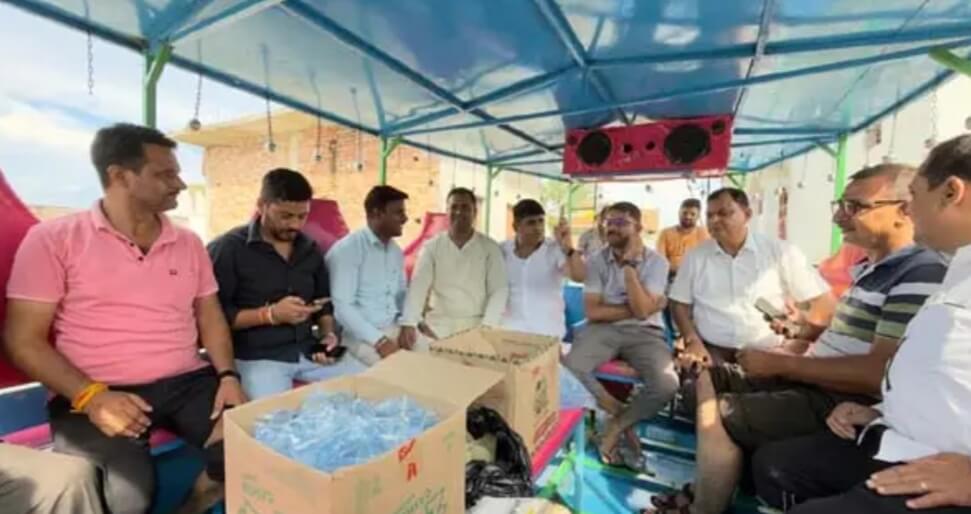 जयसिंहपुरा खादर में बाढ़ पीड़ितों को घर घर जाकर बांटे भोजन पैकेट व पानी