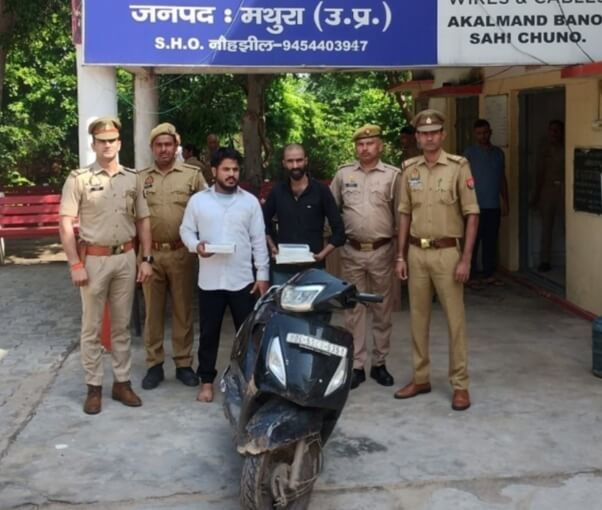 मथुरा। नशे के खिलाफ सख्त कार्रवाई के तहत पुलिस को बड़ी सफलता हाथ लगी है। एएनटीएफ टीम ने बाजना कट यमुना एक्सप्रेसवे पर बुधवार रात दो अंतरराज्यीय तस्करों को दबोचकर उनके कब्जे से एक किलो 45 ग्राम हेरोइन व एक स्कूटी बरामद की है। बरामद हीरोइन की कीमत करीब पांच करोड़ रूपये है। साथ ही कई विदेशी नोट भी बरामद हुए है। एसपी ग्रामीण सुरेश चंद्र रावत ने बताया कि मंगलवार को नौहझील क्षेत्र के बीट से तस्करी की सूचना मिलने के बाद निरीक्षक हरवेंद्र मिश्रा के नेतृत्व में एएनटीएफ टीम सक्रिय हुई। बुधवार शाम मुखबिर से पुख्ता सूचना मिली कि गुरुग्राम निवासी वकार उर्फ साहिल व दिल्ली के सीलमपुर निवासी फैजान स्कूटी से हेरोइन की बड़ी खेप सप्लाई करने बाजना कट की ओर आ रहे हैं। इस पर पुलिस की संयुक्त टीम ने बाजना कट के पास घेराबंदी कर दी। रात आठ बजे मुखबिर के इशारे पर मोरकी इंटर कालेज के पास स्कूटी सवार दोनों संदिग्ध को रोककर पूछताछ की गई। दोनों घबरा गए और स्वीकार किया कि वे हेरोइन की सप्लाई देने आए हैं। तलाशी के दौरान स्कूटी की डिग्गी से एक लैदर बैग में दो सफेद पन्नियों में भरा मादक पदार्थ बरामद हुआ। ड्रग डिटेक्शन किट से जांच में वह हेरोइन निकली। वजन करने पर एक पन्नी में 526 ग्राम और दूसरी में 519 ग्राम हेरोइन निकली।इसके अलावा आरोपितों से मोबाइल फोन, कई विदेशी नोट, एटीएम कार्ड व नकदी भी बरामद की गई। बरामद हेरोइन की कीमत करीब पांच करोड़ रुपये है। पूछताछ में तस्कर वकार ने कबूला कि वह पिछले आठ नौ वर्ष से अमन नामक सप्लायर के संपर्क में है, जो दिल्ली व गुरुग्राम में हेरोइन सप्लाई कराता है। वह छतरपुर में रहने वाले टी अमन नीग्रो से माल लेकर आगे सप्लाई करता था। फैजान भी उसके साथ सप्लाई में शामिल रहता था। एसपी ग्रामीण ने बताया कि दोनों तस्करों के साथी को पकड़ने की तैयारी की जा रही है।