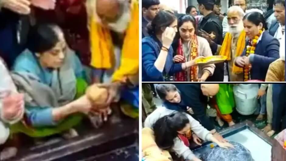 गोवर्धन पहुंची पूर्व भाजपा प्रवक्ता नुपूर शर्मा:गिरिराज महराज की पूजा कर मांगी मनौती, परिवार संग परिक्रमा भी की