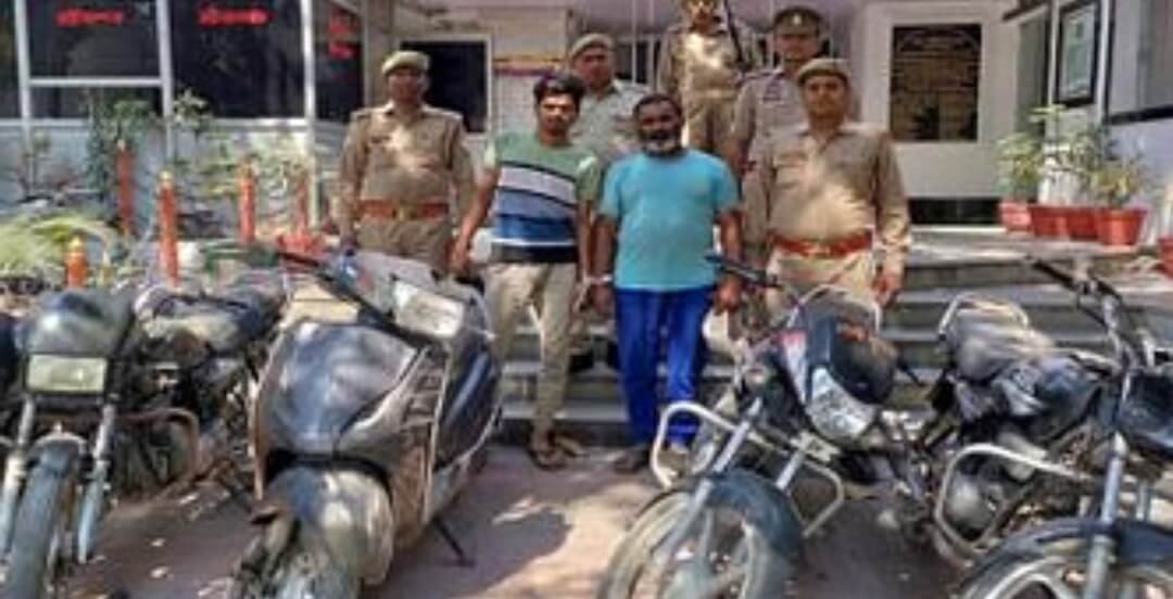 मथुरा। गोविंद नगर पुलिस ने चेकिंग के दौरान दो वाहन चोरों को गिरफ्तार किया। उनकी निशानदेही पर पुलिस ने चार बाइक, एक स्कूटी और चाकू बरामद किया है। पुलिस ने दोनों को कोर्ट में पेश किया, यहां से उन्हें जेल भेज दिया। थाना प्रभारी निरीक्षक कमलेश कुमार सिंह ने बताया कि बृहस्पतिवार की रात को चेकिंग के दौरान पुलिस ने अमरनाथ स्कूल की और जाने वाले रास्ते पर लुहार बगीची कब्रिस्तान में दो बाइक सवारों को संदिग्ध हालत में खड़ा देखा। पुलिस ने उन्हें टोका तो वह भागने लगे। पुलिस ने उन्हें पकड़ लिया। उनसे बाइक के कागजात मांगे तो वह सकपका गए। पुलिस उन्हें पूछताछ के लिए थाने ले आई। यहां उन्होंने अपना नाम थाना गोविंद नगर की नई बस्ती स्थित बद्रीनगर निवासी युसुफ उर्फ ईसुब, कोसीकलां के मोहल्ला नाडूवास नक्काशा एवं हाल नई बस्ती बद्रीनगर निवासी मो. अनवार कुरैशी बताया। पुलिस ने दोनों की निशानदेही पर लोहार बगीची कब्रिस्तान से दो बाइक और एक स्कूटी बरामद की। थाना प्रभारी ने बताया कि यूसुफ उर्फ ईसुब के कब्जे से एक चाकू भी बरामद हुआ। युसुफ के खिलाफ कोतवाली, वृंदावन और गोविंद नगर में 5 मुकदमे विभिन्न धाराओं में दर्ज हैं।