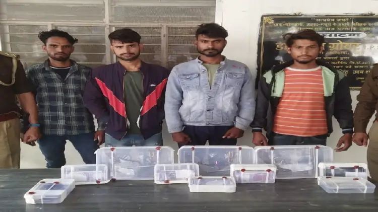 एसएसपी शैलेष कुमार पांडेय को सूचना मिली कि नकली नोटों की खेप मथुरा लाई गई है। त्वरित कार्रवाई के लिए शहर कोतवाल संजय कुमार पांडेय और एसओजी प्रभारी राकेश यादव को लगाया। पुलिस ने पुराने बस अड्डे के खंडहर से चार जालसाजों को दबोच लिया। तलाशी में इनके कब्जे से 53 हजार 500 रुपये के जाली नोट बरामद हुए। एसपी सिटी मार्तंड प्रकाश सिंह ने बताया कि पकड़े गए देवा सिह निवासी मोहल्ला जुझार जैंत, गोपाल सिसौदिया निवासी मोहल्ला चौमुहां जैंत, ओमप्रकाश उर्फ ओमी निवासी मोहल्ला थमू जैंत और भोलू उर्फ संजय निवासी बैरी फरह हैं। इनके कब्जे से तीन तमंचे, 5 कारतूस और दो बाइक बरामद की हैं। 100 रुपये के नोट 52 हजार, 200 रुपये के नोट डेढ़ हजार बरामद किए है