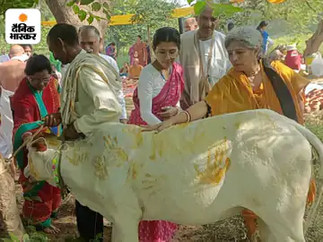 मथुरा। गोवर्धन में गिरिराज पूजा के लिए गोवर्धन में आस्था का सैलाब उमड़ पड़ा। देसी-विदेशी भक्तों की टोलियां हरिनाम संकीर्तन के साथ नृत्य करते हुए गौड़ीय मठ से गोवर्धन पूजा के लिए निकली तो गिरिराज नगरी भक्ति से सराबोर हो गई। विदेशी श्रद्धालु सिर पर दूध, दही, माखन मिश्री लेकर पूजा करने तलहटी पहुंचे। छप्पन भोग लगाए गए। गोवर्धन में गिरिराज पूजा के लिए 22 देशों से विदेशी भक्त शामिल हुए। गौड़ीय मठ मंदिर से भक्तों की टोली सिर पर दूध, दही, शहद, गंगाजल, प्रसाद की टोकरी लेकर निकली। भक्तों ने राजा वाले मंदिर स्थित गिरिराजजी की शिला पर दूध, दही, शहद, बूरा, गंगा जल आदि से अभिषेक किया। नीरज शर्मा ने पूजा कराई। श्री गोवर्धन महाराज तेरे माथे मुकुट बिराजि रह्यौ भजन की धुन पर भक्त भक्ति में लीन नजर आए। शोभायात्रा गिरिराज मुकुट मुखारबिंद मंदिर से अपराह्न एक बजे शुरू हुई। दसविसा बाजार, सौंख अड्डा, दानघाटी, बड़ा बाजार, हाथी दरवाजा, चकलेश्वर मंदिर मार्ग से बैंडबाजों एवं नंद बाबा, कृष्ण- बलराम व अनेक झांकियों के साथ निकाली गई। शोभायात्रा में दसविसा ब्राह्मण समाज की महिलाएं, पुरुष चल रहे थे। इस अवसर पर नगर पंचायत अध्यक्ष खेम चंद शर्मा, रिसीवर उमाकांत चतुर्वेदी, सभासद संजय लवानियां, श्रीधर पाठक, रवि, चंद्र विनोद कौशिक, कृष्णगोपाल शर्मा, पूनम शर्मा आदि मौजूद रहे। विधायक ठा. मेघश्याम सिंह ने कार्यकर्ताओं के साथ गिरिराज जी का दुग्धाभिषेक कर पूजा की। इसके बाद परिक्रमा लगाई । सेवायतों ने गिरिराज प्रभु का दिव्य फूलों से बंगला सजाया। पुष्प महल में विराजे गिरिराज प्रभु ने भक्तों को दर्शन दिए। सेवायत पवन कौशिक ने बताया कि पांच लाख से अधिक श्रद्धालु गोवर्धन पहुंचे हैं। द्वापर युग में श्रीकृष्ण ने ब्रजवासियों से इंद्र की पूजा बंद करा कर गिरिराजजी की पूजा कराई थी। इससे इंद्र क्रोधित हो उठा और सात दिन तक रात-दिन मूसलाधार बरसात की। कृष्ण ने तर्जनी अंगुली पर गिरिराज पर्वत को धारण कर ब्रजवासियों की रक्षा की। विदेशी महिलाएं साड़ी पहन कर गोपी भेष में रंगी नजर आईं। सुमन, मानसी, भारती का कहना है कि कार्तिक मास में कृष्ण भक्ति करने ब्रज आती हैं। रूस से आई आनंद प्रदायिनी दासी ने बताया कि वह गिरिराज पूजा के लिए गोवर्धन आती हैं। कल्याणी दासी ने बताया कि वे पांच साल से गोवर्धन पूजा-अर्चना करने आ रही हैं। रशियन श्याम दास ने बताया कि उनको भारतीय संस्कृति अच्छी लगती है। जालंधर से आई गीता दासी ने बताया कि वे 10 साल से गोवर्धन पूजा करने आ रही हैं। श्रद्धालुओं की टोली गौड़ीय मठ आश्रम से बाहर निकली तो प्रशासनिक व्यवस्थाओं की पोल खुल गई। एकता तिराहा, होटल विंगिस्टन के सामने सड़क किनारे खड़ी गाड़ियों से रास्ता जाम हो गया। डॺूटी 