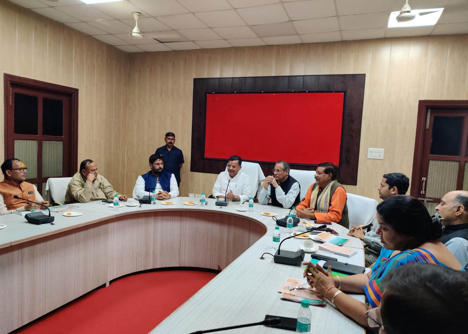 बैठक में उत्तर प्रदेश ब्रज तीर्थ विकास परिषद के उपाध्यक्ष शैलजाकांत मिश्र जी, माननीय विधायक राजेश चौधरी जी, पूरन प्रकाश जी, मेघश्याम सिंह जी, ओम प्रकाश सिंह जी, सांसद प्रतिनिधि जनार्दन शर्मा, जिलाध्यक्ष मधु शर्मा जी, जिलाधिकारी पुलकित खरे, उपाध्यक्ष मथुरा-वृंदावन विकास प्राधिकरण सहित आदि विभागों के अधिकारियों मौजूद रहे l