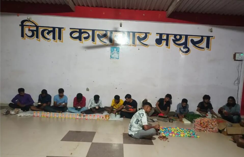 मथुरा जिला कारागार में बंदी बना रहे दीपक और लक्ष्मी-गणेश की मूर्तियां