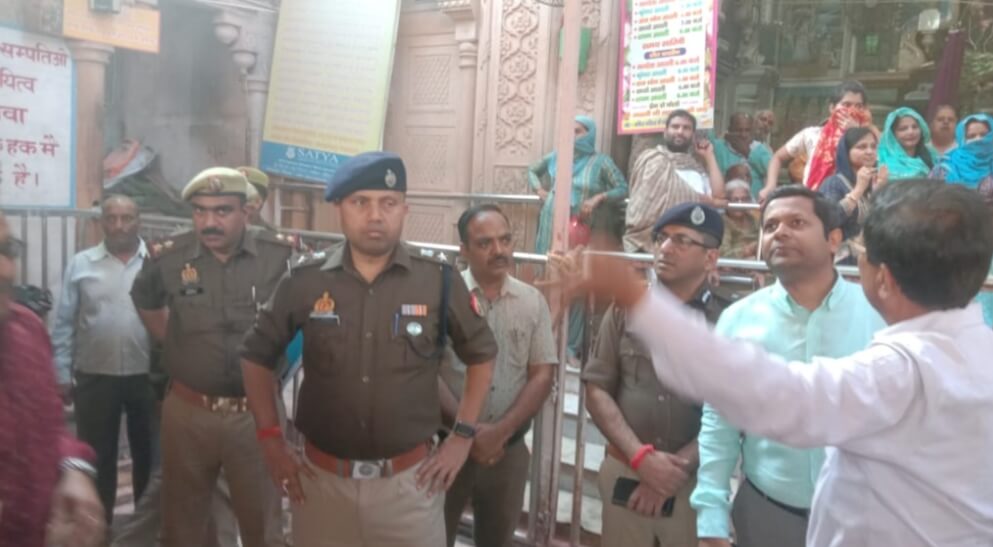 मथुरा 27 फरवरी 2023 श्री राधारानी जी मन्दिर बरसाना में विश्व प्रसिद्ध लड्डू मार होली के अवसर पर पुलिस महानिरीक्षक आगरा परिक्षेत्र आगरा, जिलाधिकारी एवम् वरिष्ठ पुलिस अधीक्षक महोदय द्वारा व्यवस्थाओं का निरीक्षण किया गया। ड्यूटी पर लगे पुलिस बल को चैक किया गया एवम् श्रद्धालुओं व जनपदवासियों को किसी प्रकार की अव्यवस्था/असुविधा का सामना न करना पड़े, इस सम्बन्ध में सुझावो का आदान-प्रदान किया गया व सम्बन्धित को आवश्यक दिशा-निर्देश दिये गये।
