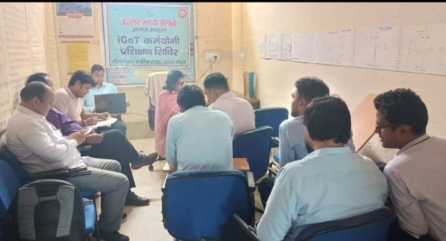 प्रधान मुख्य कार्मिक अधिकारी प्रयागराज के दिशा-निर्देश के अनुपालन में आगरा मण्डल में सेवारत कर्मचारियों को कौशल विकास के लिये iGOT कर्मयोगी प्रशिक्षण कार्यक्रम का आयोजन मंडल रेल प्रबन्धक श्री तेज प्रकाश अग्रवाल ,अपर मंडल रेल प्रबन्धक (इन्फ्रा) श्री प्रनव कुमार एव वरि० मण्डल कार्मिक अधिकारी श्री सनत जैन के मार्ग-निर्देशन में आगरा मण्डल के आगरा ,मथुरा ,कोसीकलां ,ईदगाह ,धोलपुर ,अछनेरा ड्राइवर एव गार्ड लोको लॉबी मथुरा तथा ड्राइवर एव गार्ड लोको लॉबी आगरा आदि प्रमुख स्टेशन पर किया जा रहा हैं l