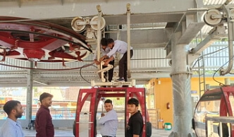 मथुरा। बरसाना में तीन दिन पहले रोपवे में आई खराबी को दुरुस्त करने के लिए शुक्रवार को भी कोलकाता से आई टीम जुटी रही। टीम ने श्रद्धालुओं के वजन के बराबर वजन के बोरे रखकर रोपवे का ट्रायल किया। ट्रायल तो ठीक रहा, लेकिन आईआईटी रुड़की की टीम का इंतजार है।18 मार्च को बरसाना में राधारानी मंदिर से लौटने वाली तीन ट्रॉलियों की रफ्तार अनियंत्रित हो गई थी। इसके बाद तीनों ट्रॉलियां स्टेशन पर आकर टकराई थीं। हालांकि हादसे में किसी भी श्रद्धालु को कोई चोट नहीं आई थी। इसके बाद से ही रोपवे का संचालन बंद चल रहा है। कोलकाता और दिल्ली से आई इंजीनियरों की टीम कमी की जांच कर रही है। अब तक की जांच में पॉवर ट्रिप होने से ब्रेक न लगाने की बात सामने आई है। लगातार टीम इस कमी को दुरुस्त करने में जुटी है। टीम ने ट्रॉलियों में श्रद्धालुओं की जगह वजन रखकर ट्रायल किया। कई बार मंदिर तक ट्रॉलियों के संचालन का ट्रायल किया गया। इस बीच पॉवर ट्रिप करके भी देखा गया, लेकिन सब कुछ ठीक रहा। हालांकि ब्रज तीर्थ विकास परिषद की ओर से आईआईटी रुड़की की टीम को जांच के लिए बुलाया गया है। अब रुड़की से टीम आने का इंतजार है। टीम कब तक आएगी इसके बारे में कोई जानकारी नहीं है। तब तक श्रद्धालुओं को रोपवे की सेवाओं के लिए इंतजार करना होगा। सूत्रों के अनुसार इसमें एक सप्ताह या उससे अधिक समय भी लग सकता है।